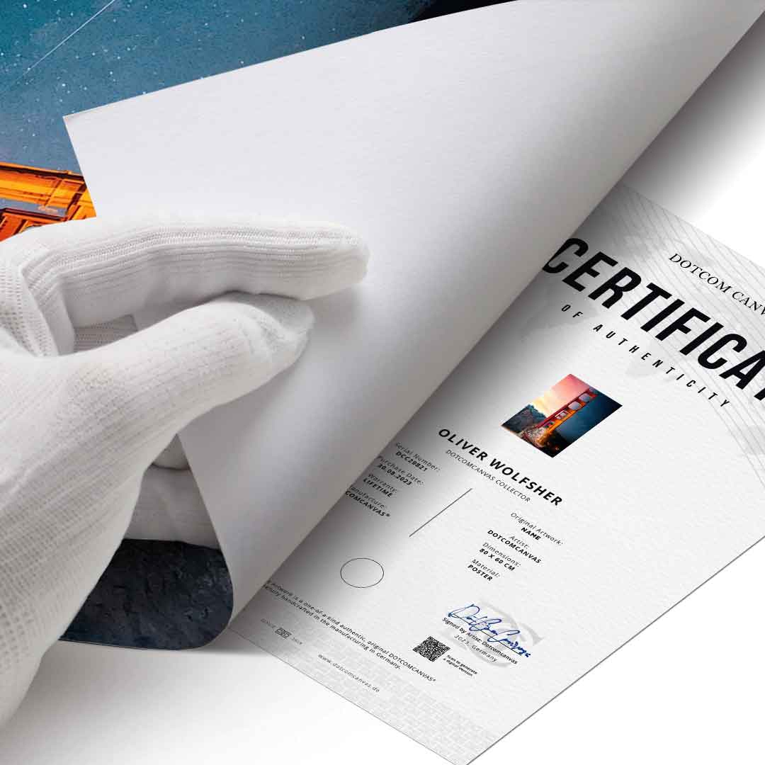 - Direkt Aufhangbereit: DOTCOMCANVAS® Poster sind direkt aufhangbereit.