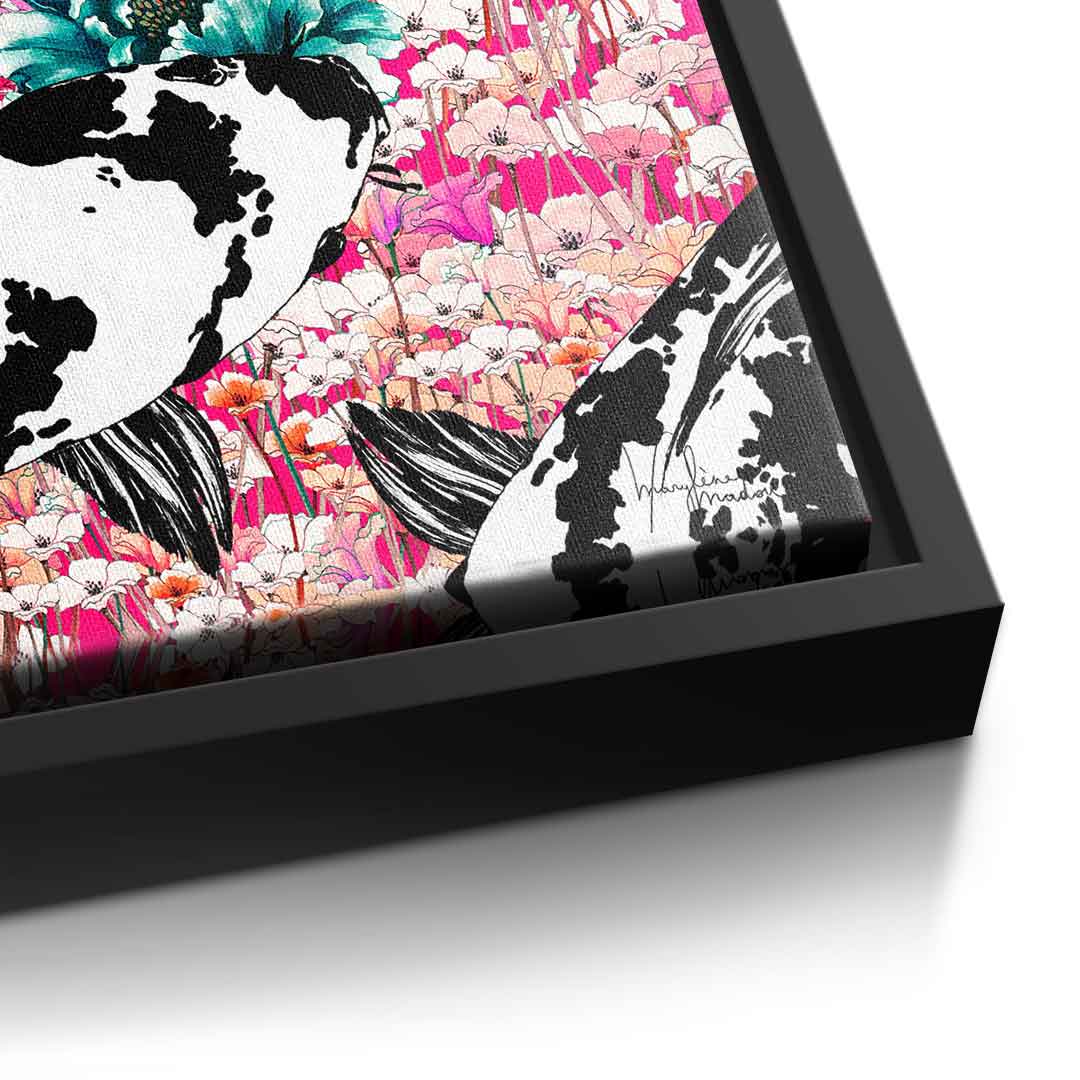 DOTCOMCANVAS® Premium Leinwandbild mit abstraktem Koi Fische und Blumen Motiv.