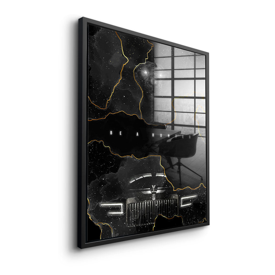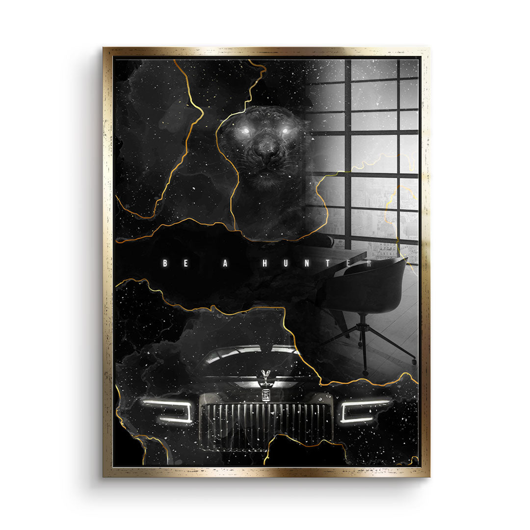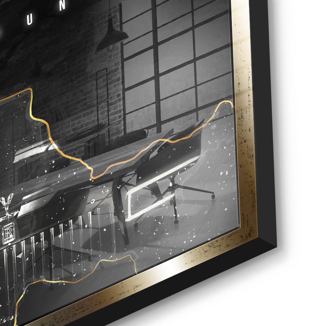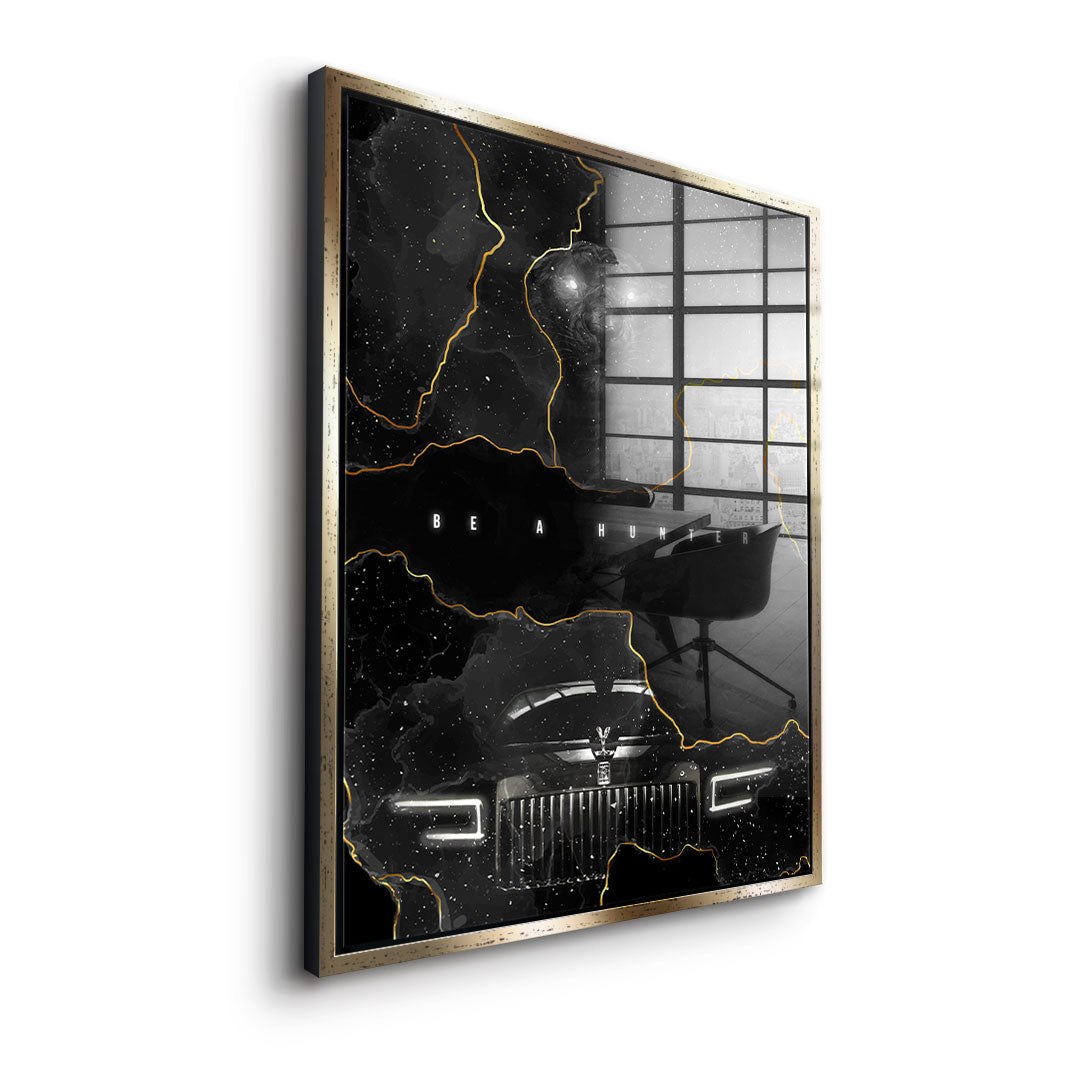 DOTCOMCANVAS® Premium Acrylglasbild mit Pop-Art Motiv in edlem schwarz-goldenem Design. Chase your dreams.