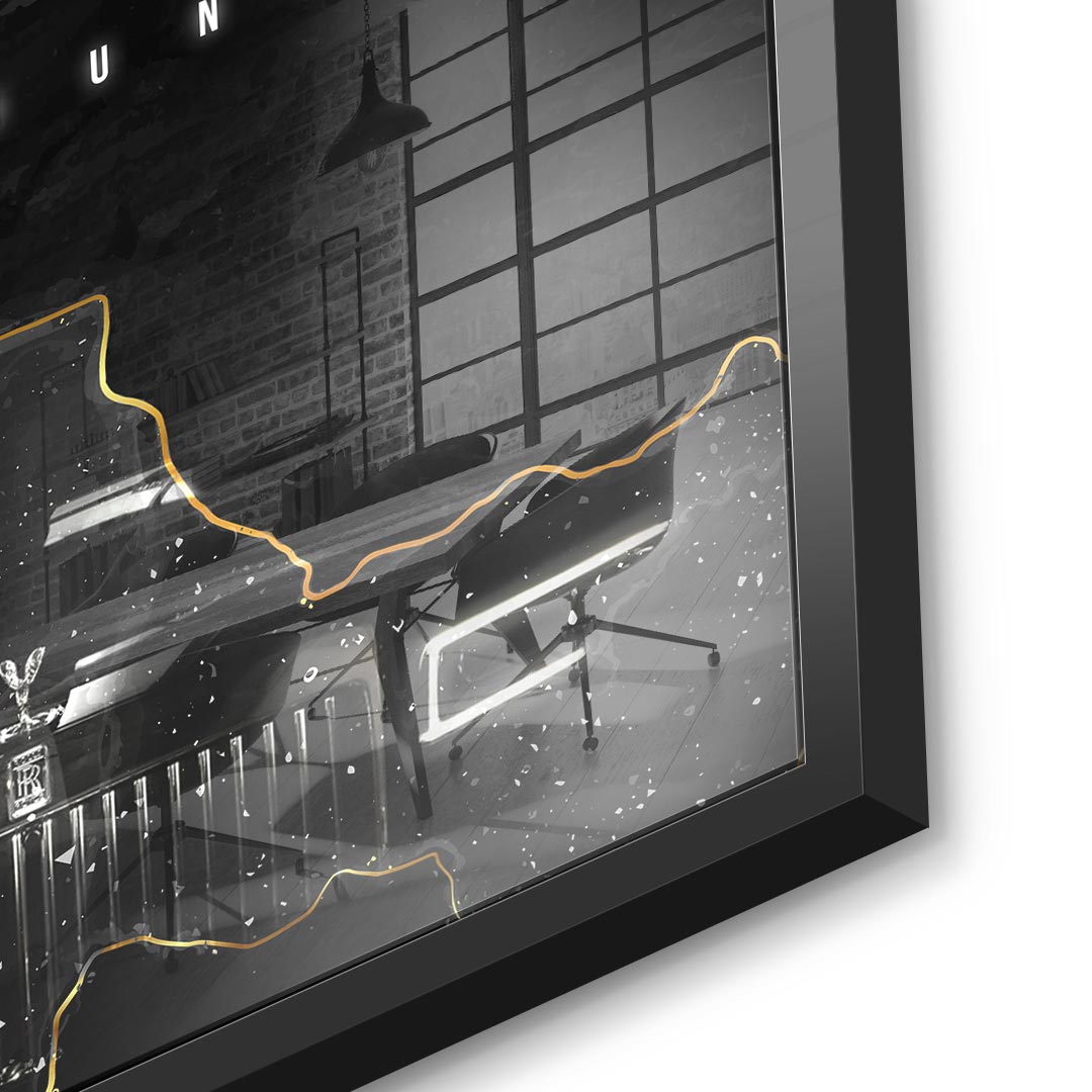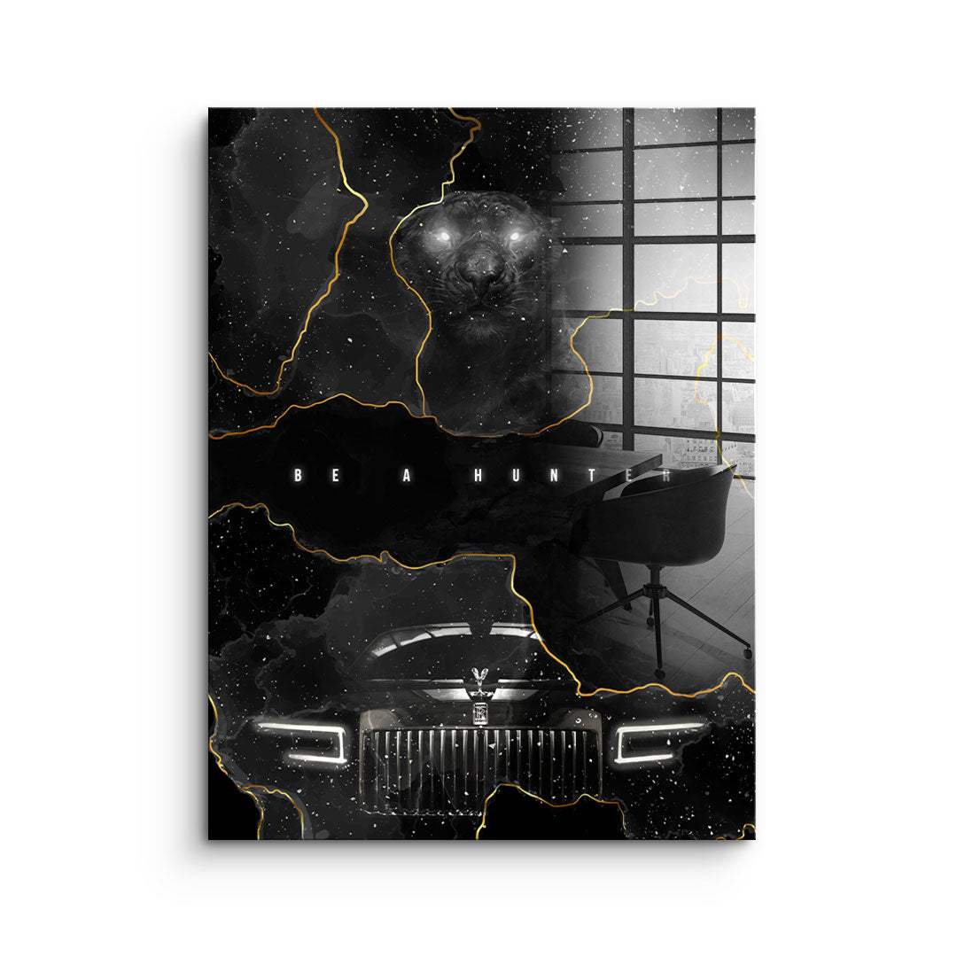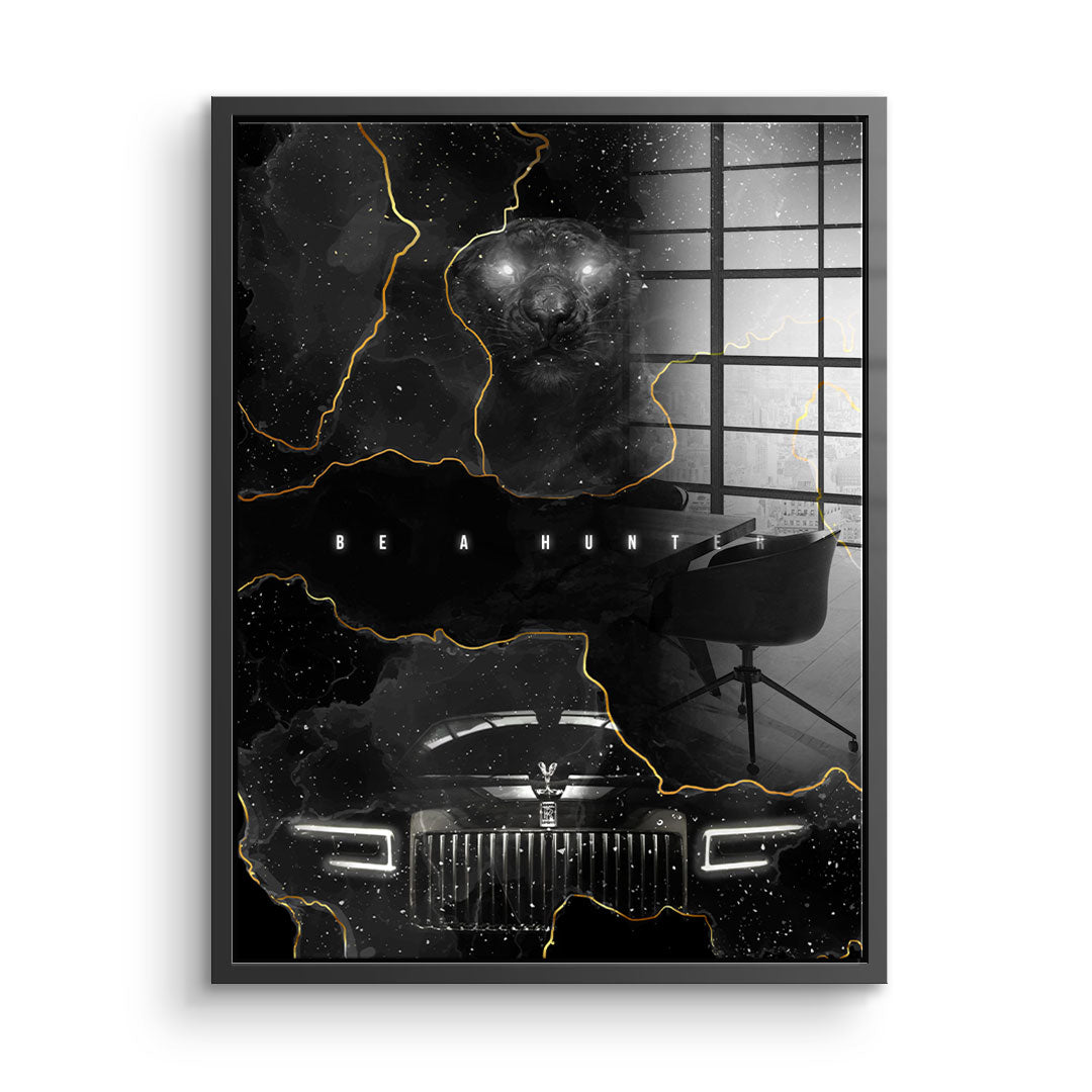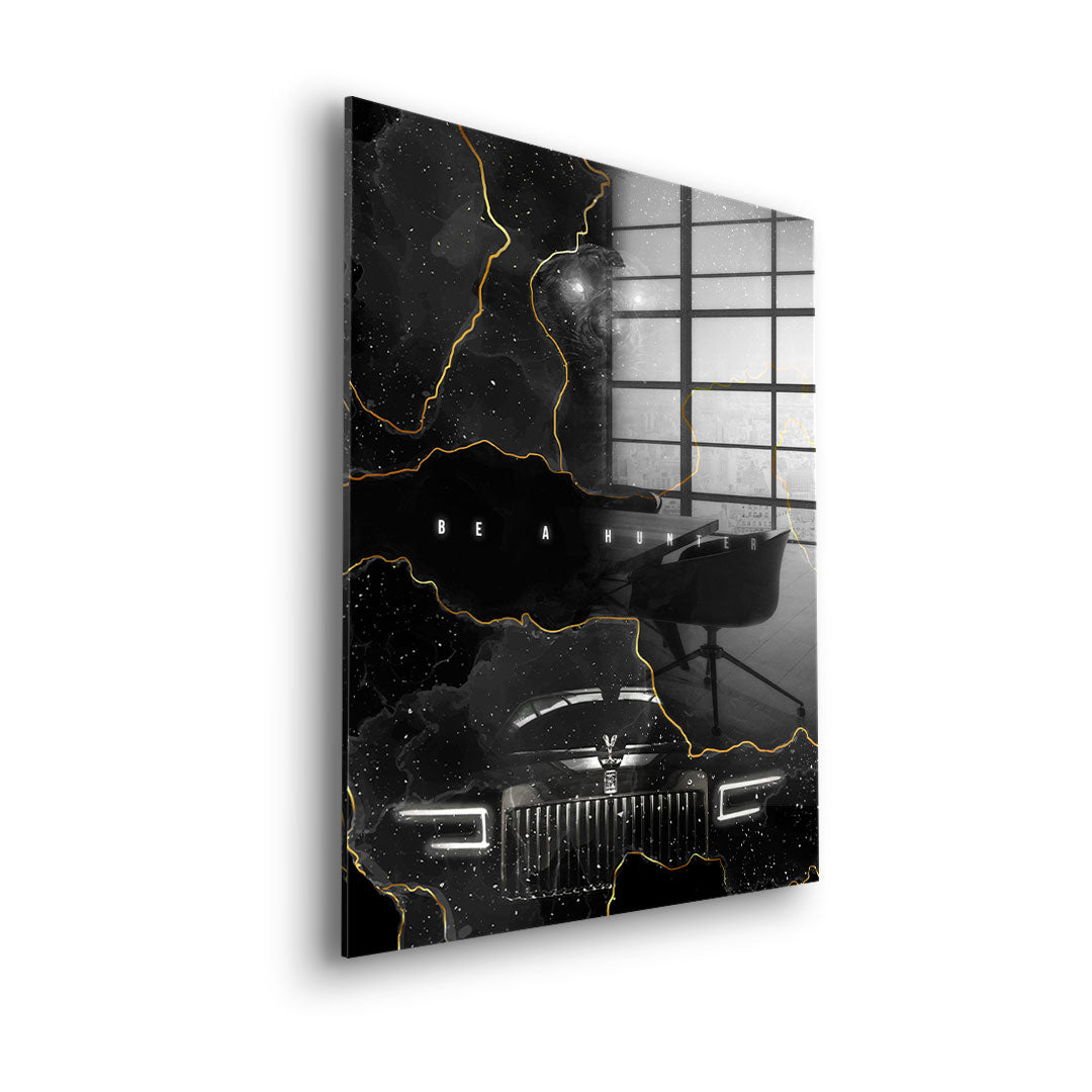 DOTCOMCANVAS® Premium Acrylglasbild mit Pop-Art Motiv in edlem schwarz-goldenem Design. Chase your dreams.