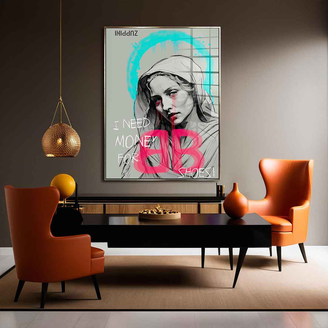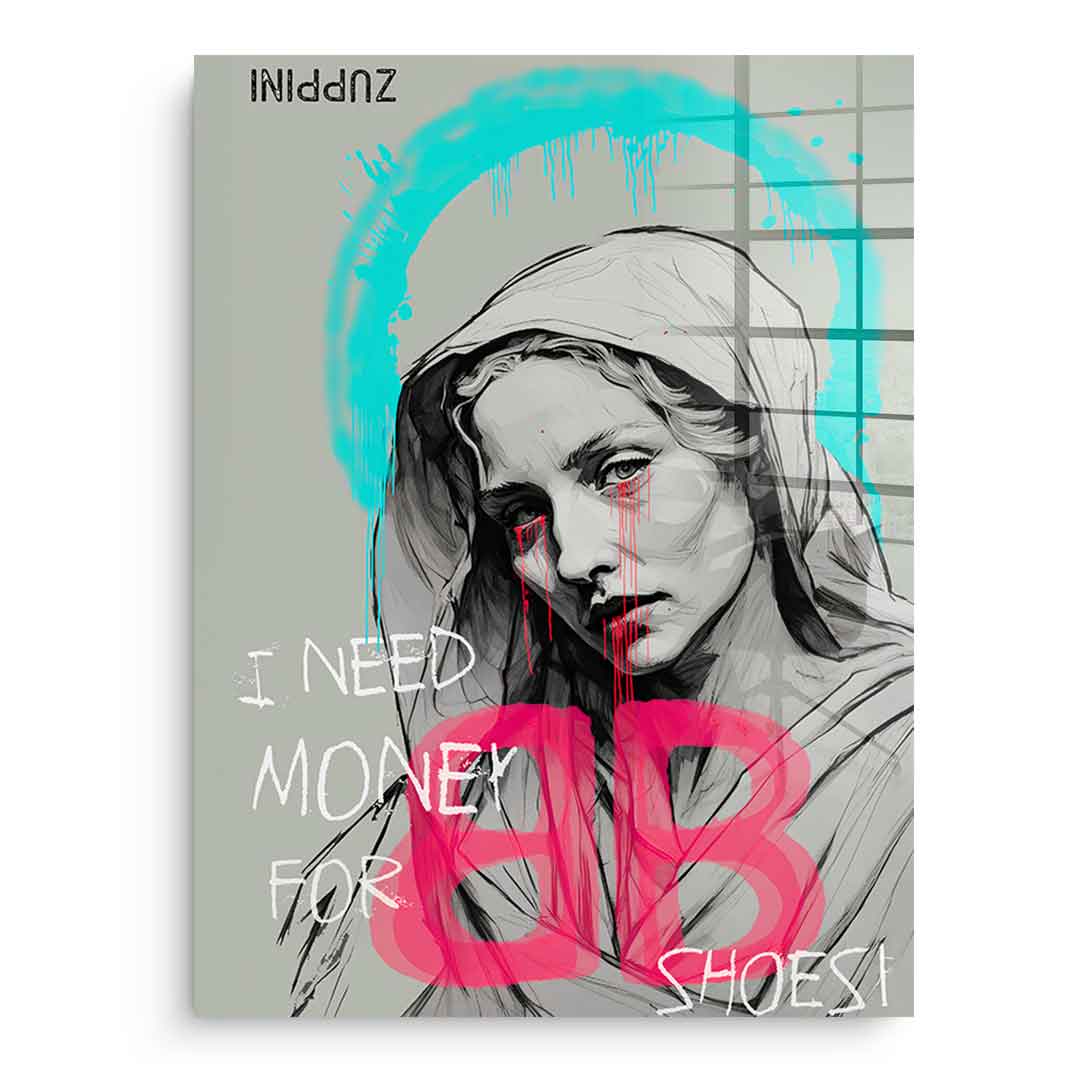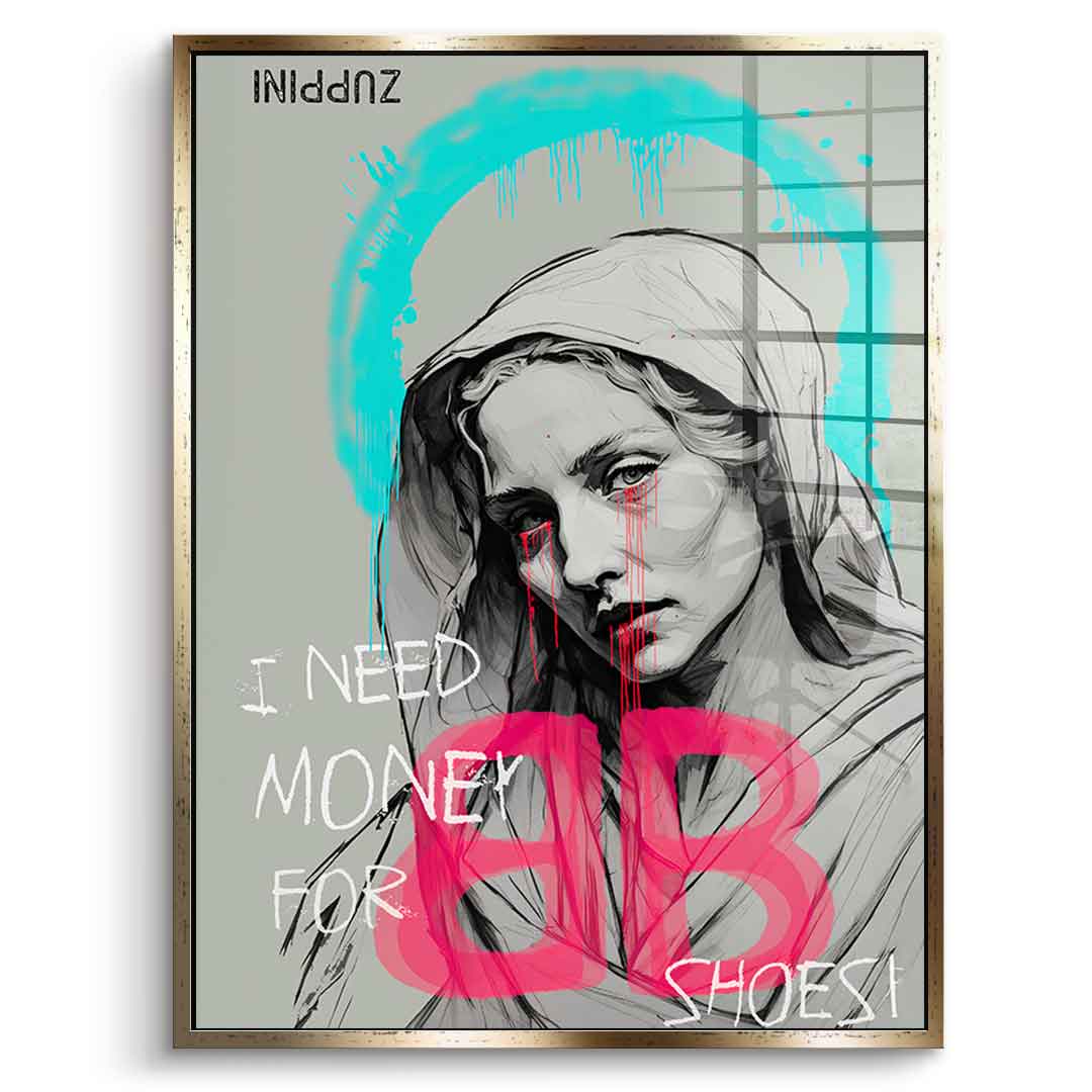 DOTCOMCANVAS® Premium Acrylglasbild mit I Need Money Motiv.