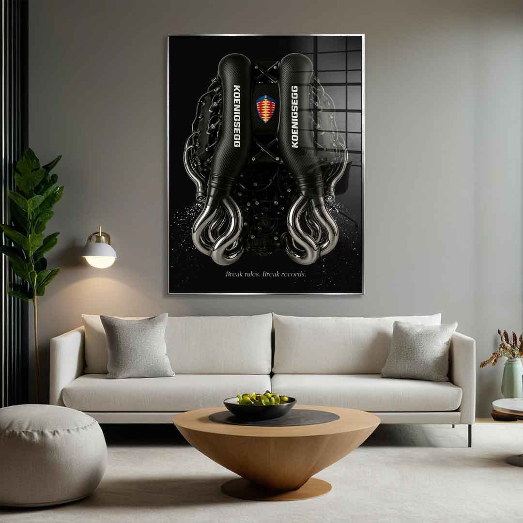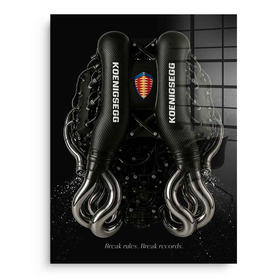 DOTCOMCANVAS® Premium Acrylglasbild mit Koenigsegg Engine Motiv.
