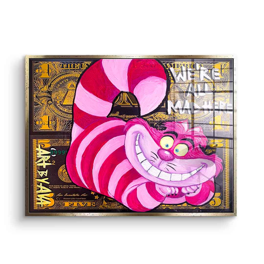 DOTCOMCANVAS® Premium Acrylglasbild mit Grinsekatze / Cheshire Cat aus Alice im Wunderland - Motiv im Comic / Cartoon Stil.