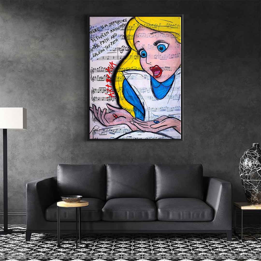 DOTCOMCANVAS® Premium Leinwandbild mit Alice im Wunderland Motiv im Comic Stil.
