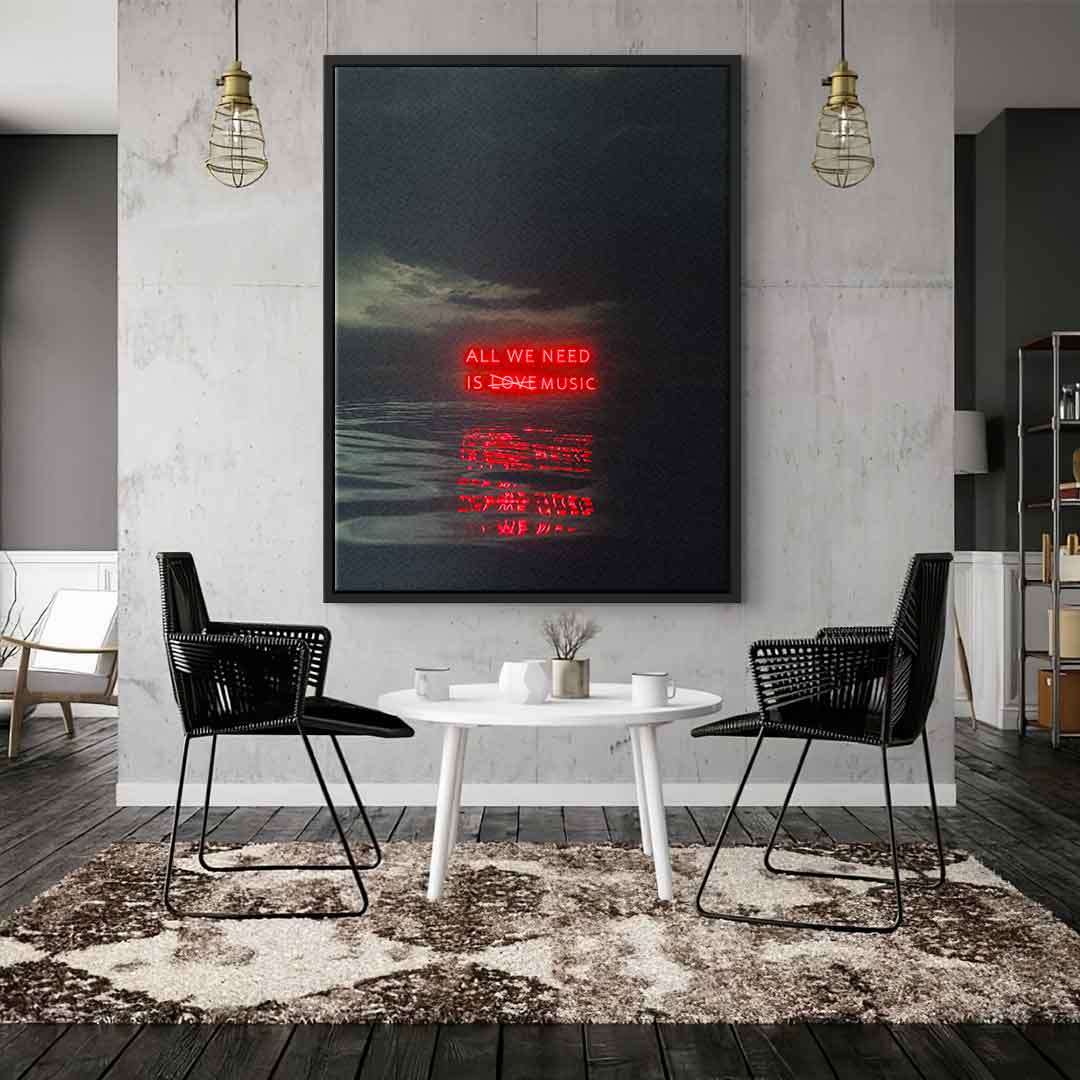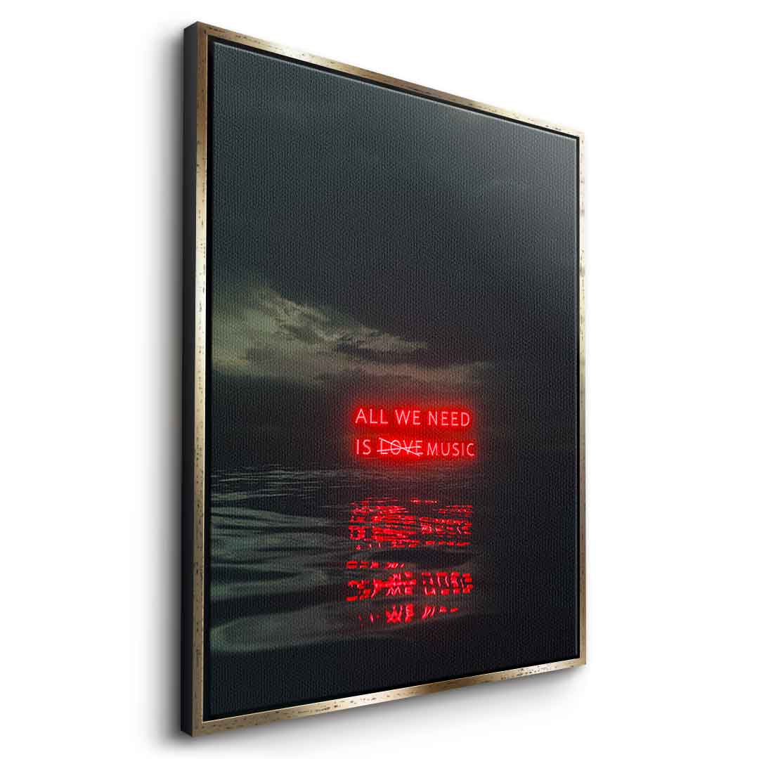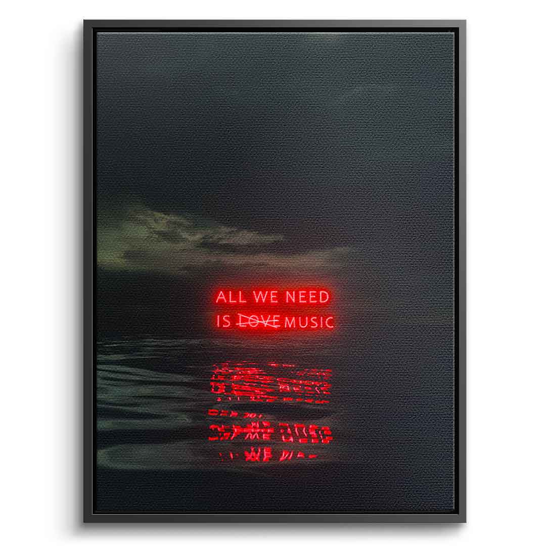 DOTCOMCANVAS® Premium Leinwandbild mit schwarzem All we need is music Motiv.