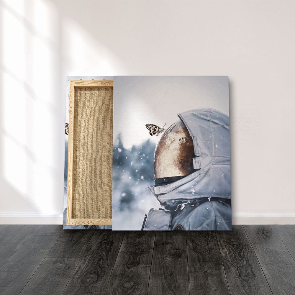 DOTCOMCANVAS® Leinwand Wandbild Butterfly Helm blau weiß Brown Space Suite Astronaut Butterfly