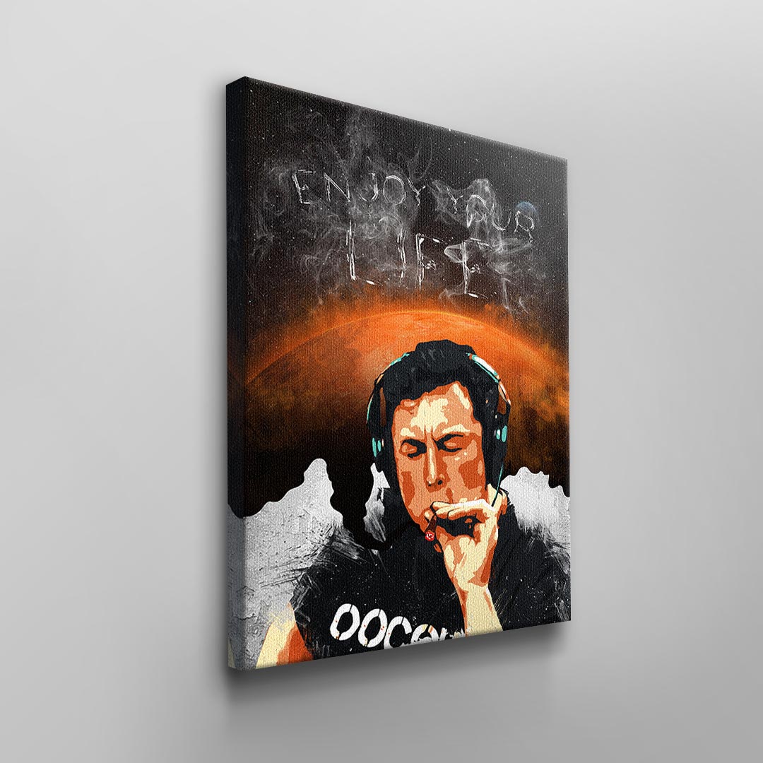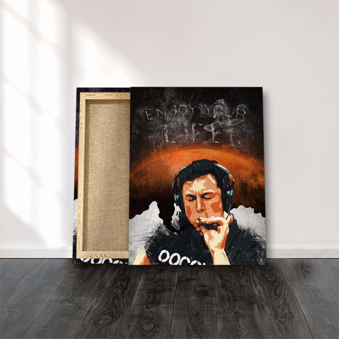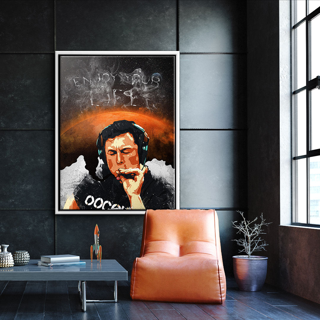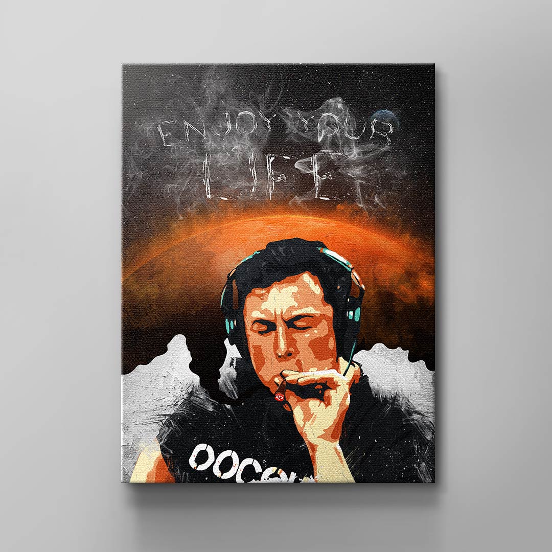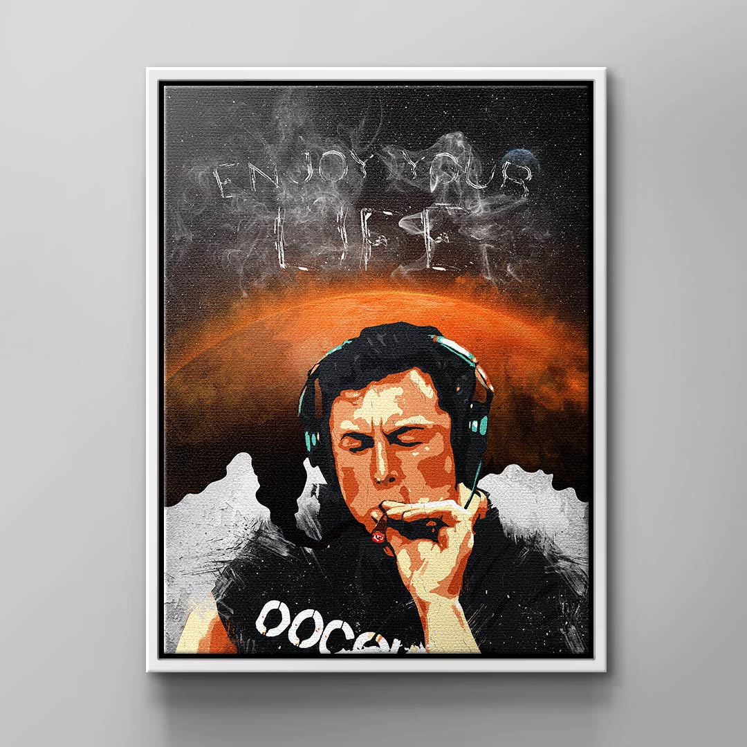 DOTCOMCANVAS® Wandbild genießen sie das leben männer rauchen kopfhörer schwarz weiß orange Enjoy your Life