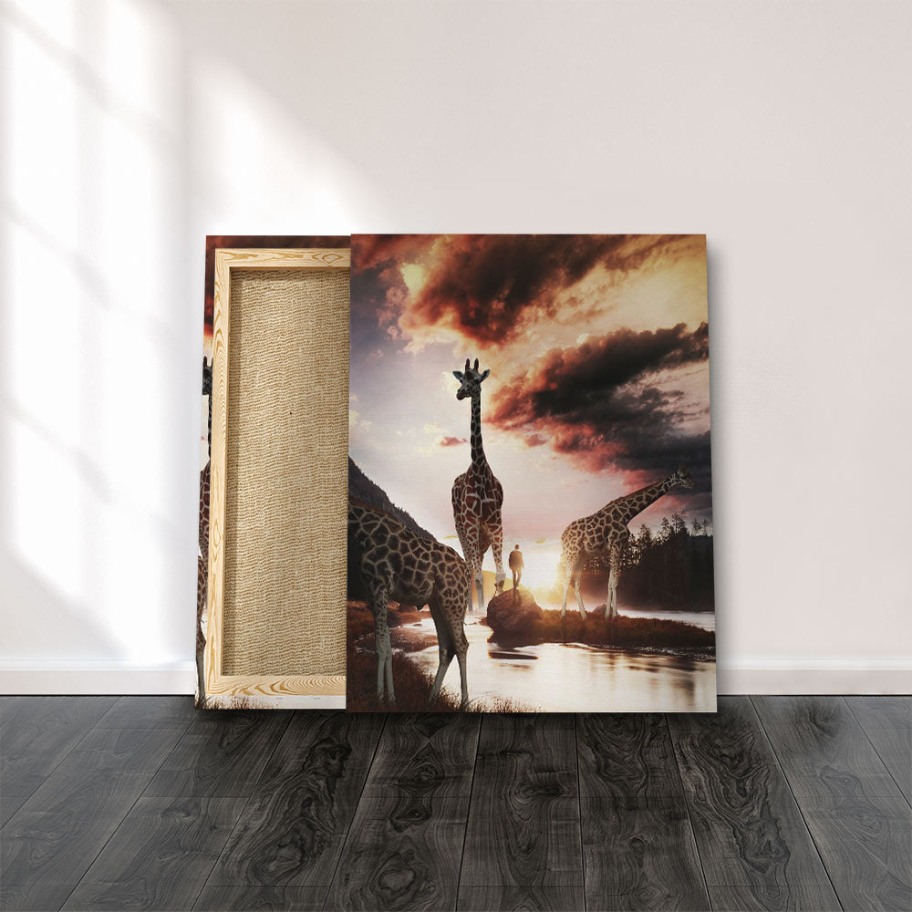 | "Giraffe Life" Wandbild Wüste mit Sonnenuntergang von DOTCOM CANVAS® | Regulärer Preis