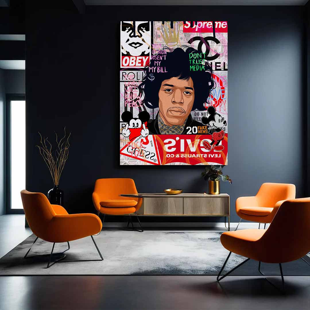 DOTCOMCANVAS® Premium Leinwandbild mit Jimmy Hendrix Motiv.