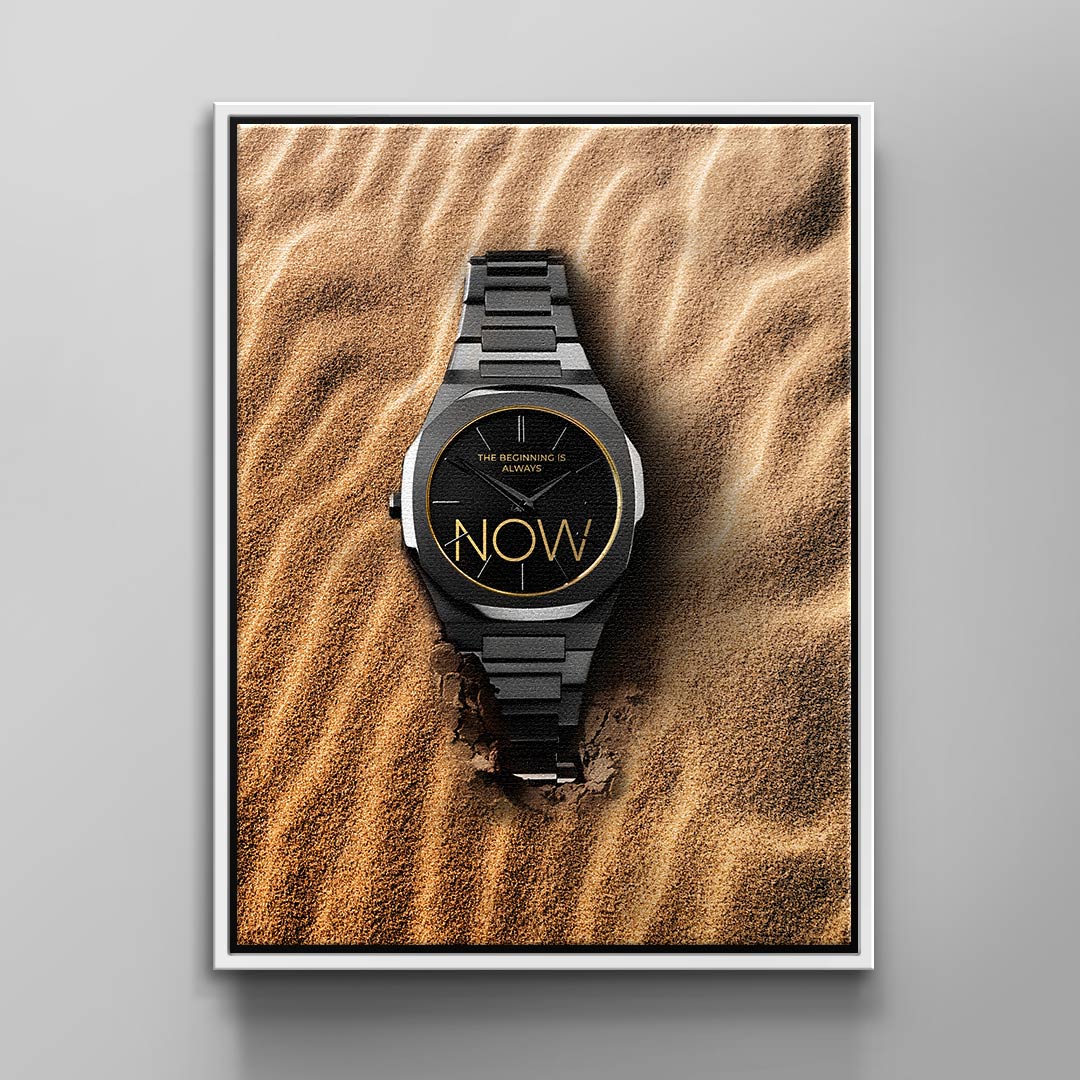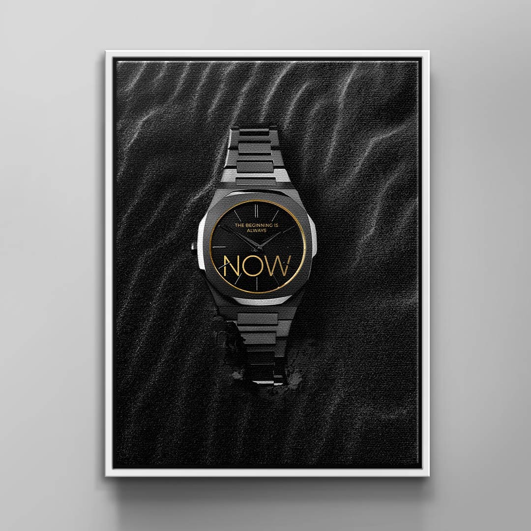 DOTCOMCANVAS® Leinwandbild mit luxuriösen Uhren Motiv und Motivationsspruch: The Beginning is always Now.