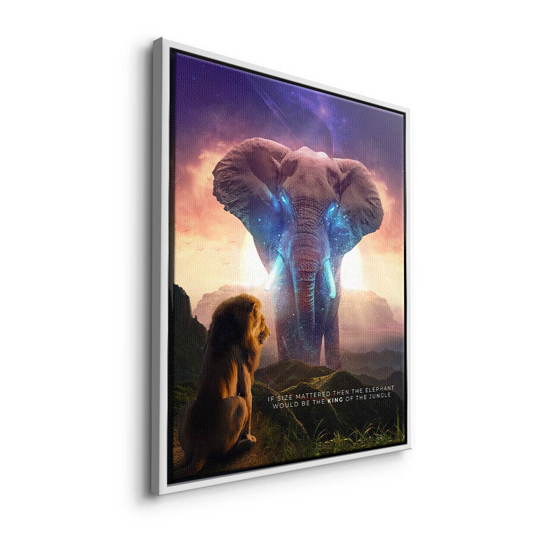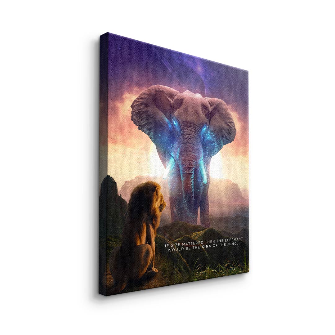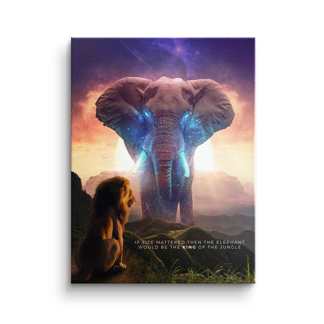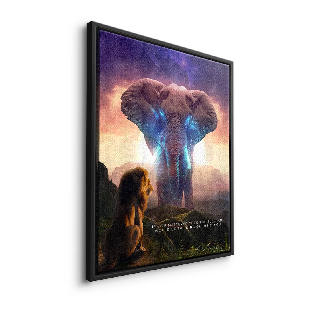 DOTCOMCANVAS® Premium Leinwandbild mit Elephant & Löwenmotiv - True King
