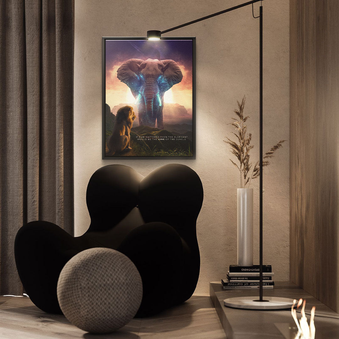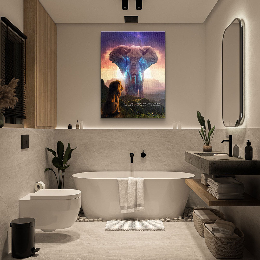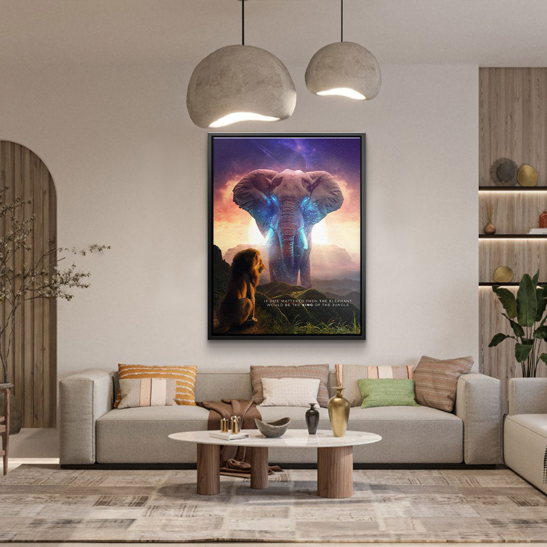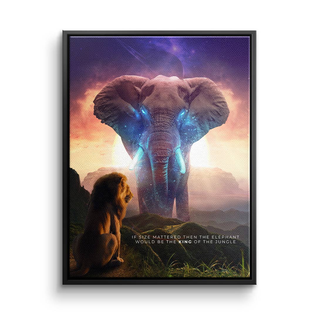 DOTCOMCANVAS® Premium Leinwandbild mit Elephant & Löwenmotiv - True King