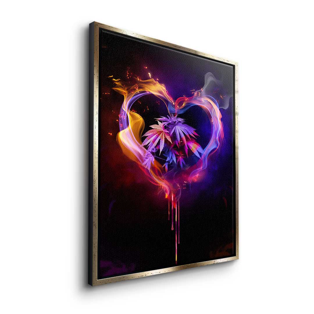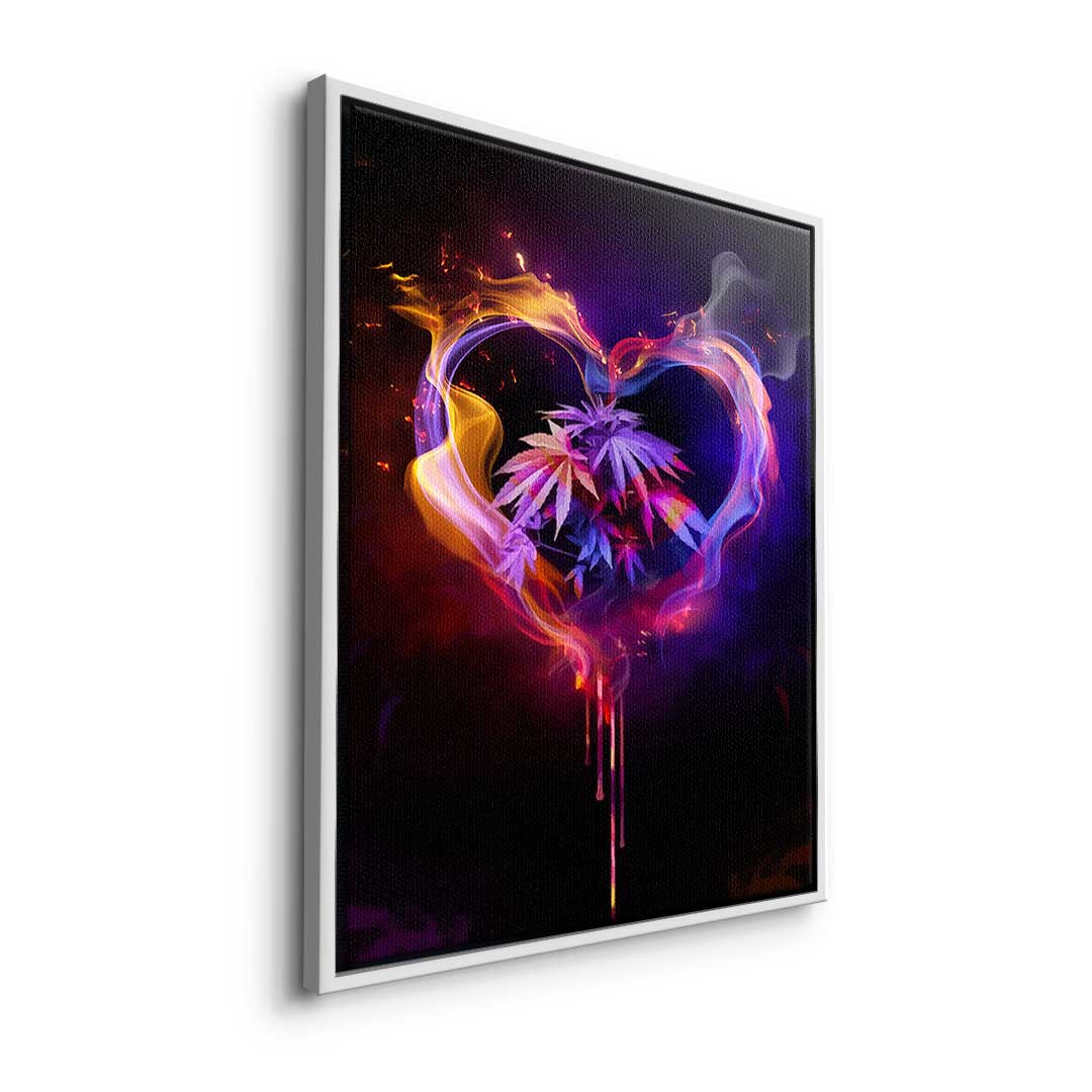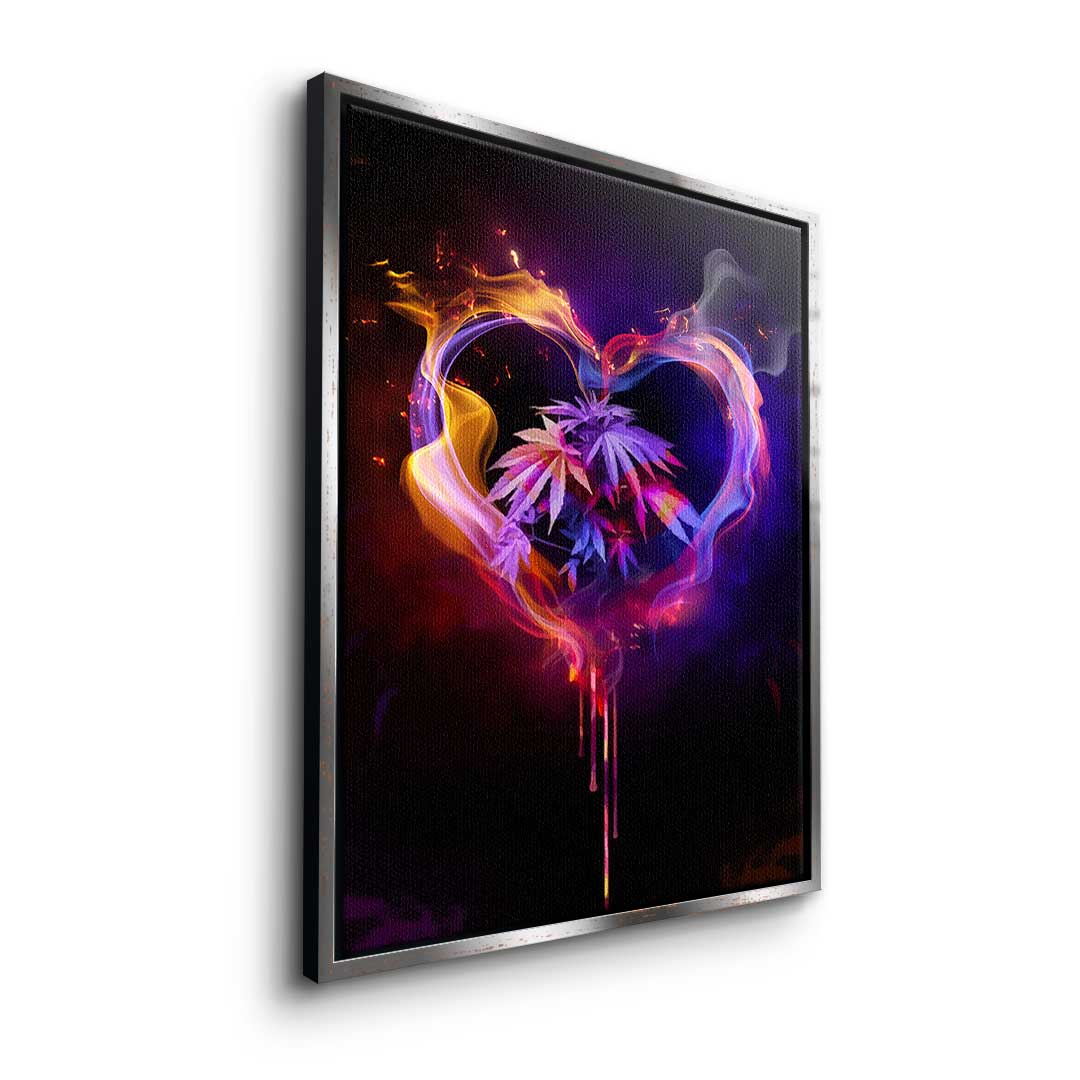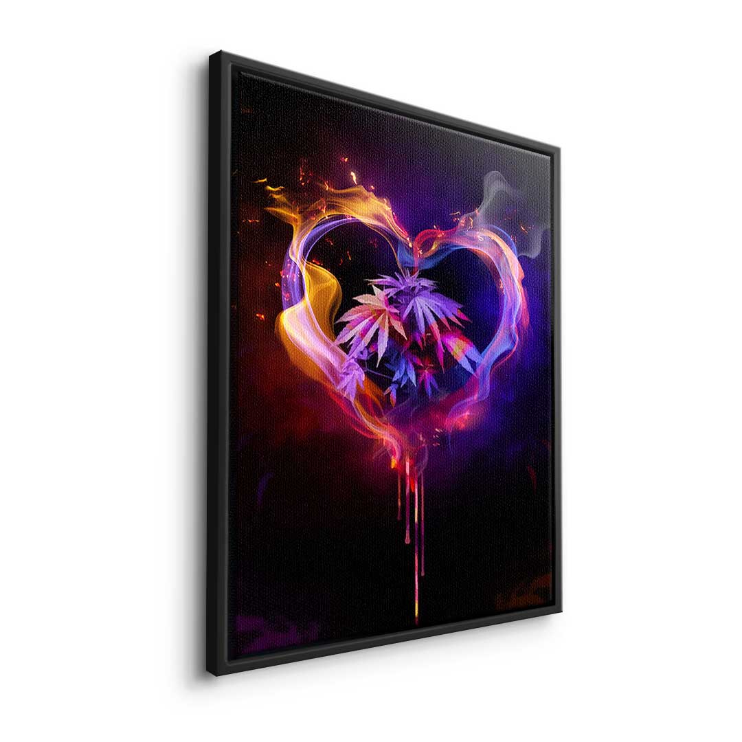 DOTCOMCANVAS® Premium Leinwandbild mit abstraktem Herz aus Blättern in Pink, Orange und Schwarz.