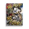 Als Nachfolger zur "Royal Duck." Hier wird im dominanten Stil die Waffe in die Luft gehoben und Macht demonstriert. Das Bild besticht primär durch die Kombination aus Gold und vielen weiteren Farbakzenten. Der Spruch "No Money No Funny" spiegelt die neue Zeit und den Fokus auf die eigenen Ziele wieder. Aufgespannt ist die Premium Leinwand auf eine hochwertigen massiven Keilrahmen - direkt Aufhangbereit.