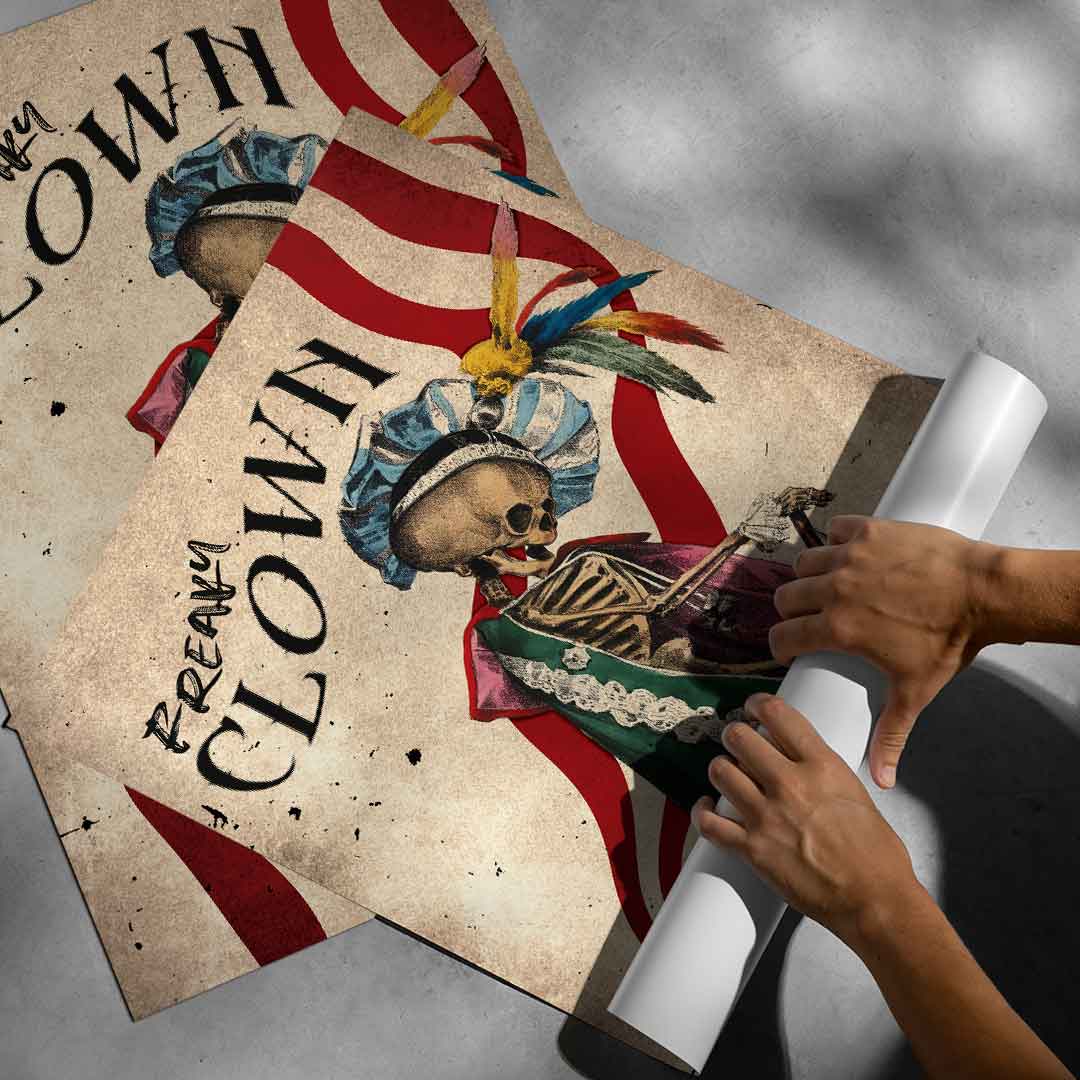 DOTCOMCANVAS® Premium Poster mit Freaky Clown Motiv.