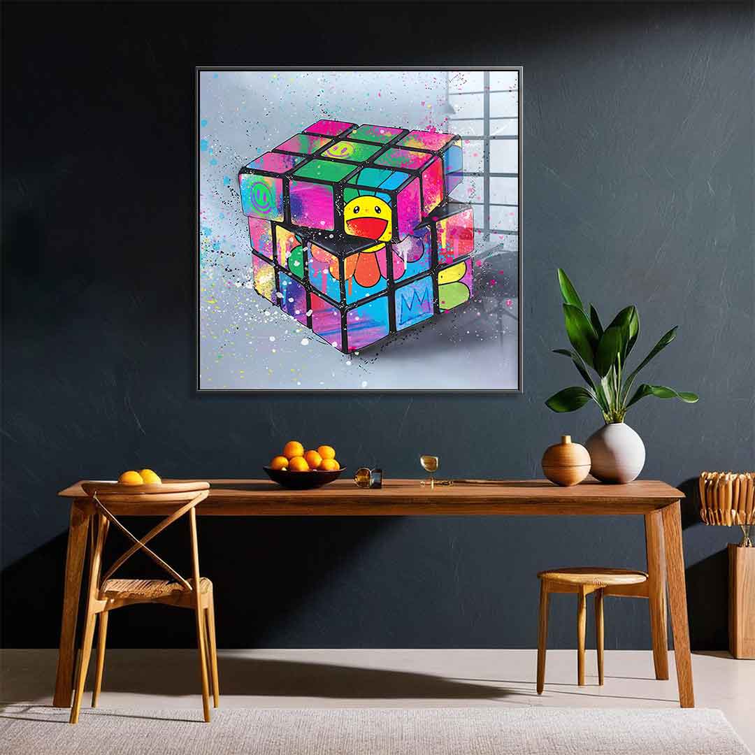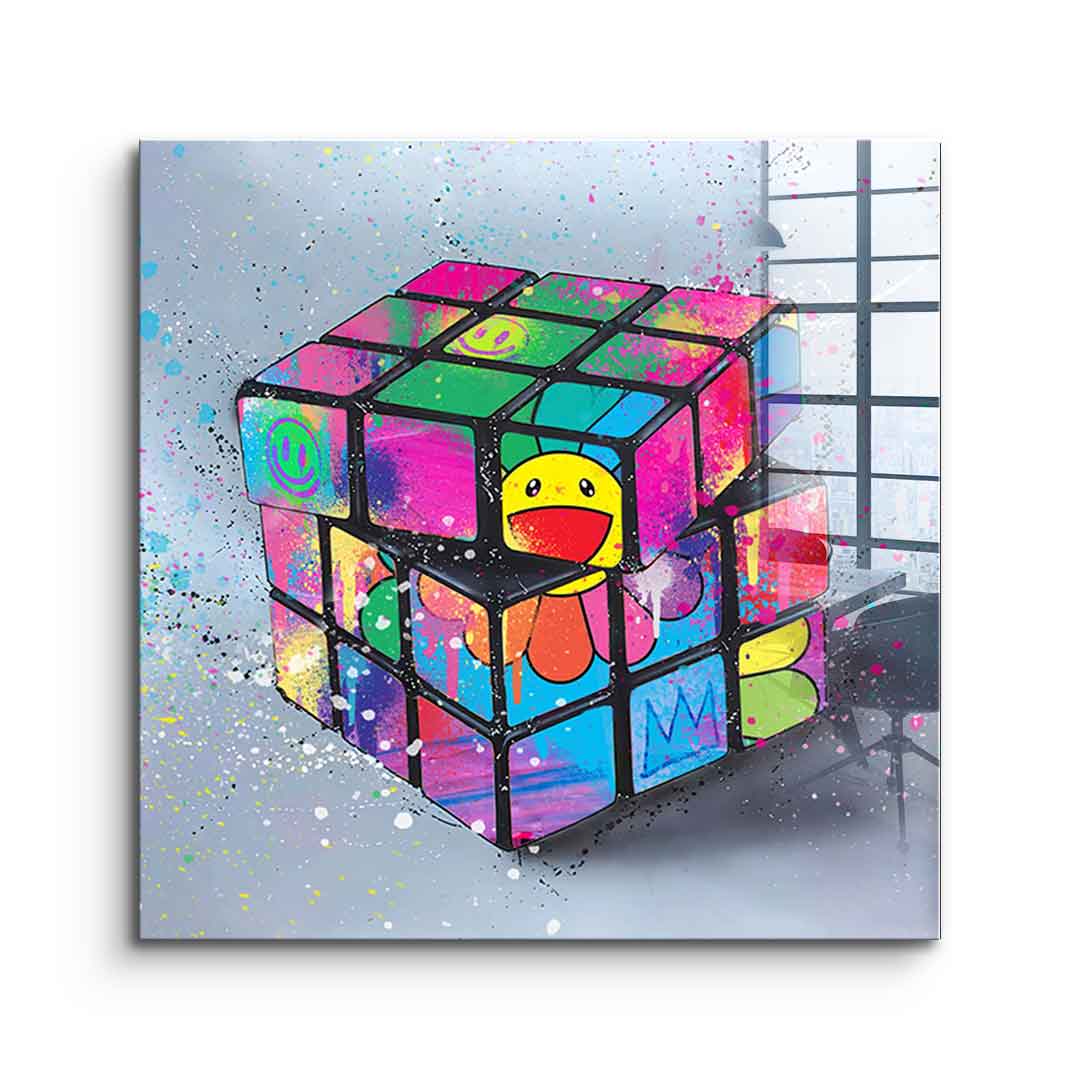 DOTCOMCANVAS® Premium Acrylglasbild mit Rubiks Cube Motiv.