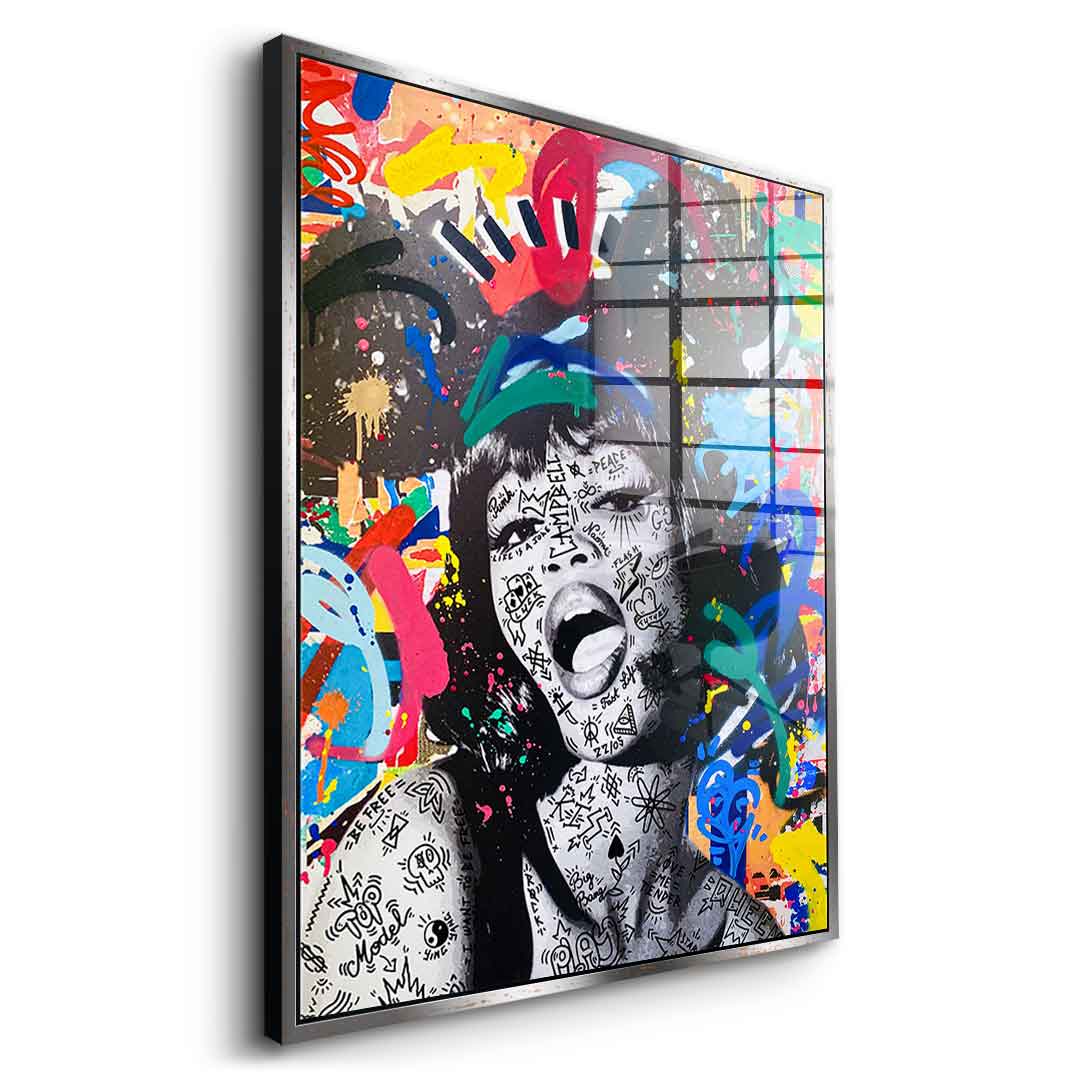 DOTCOMCANVAS® Premium Acrylglasbild mit Naomi Campbell Motiv.