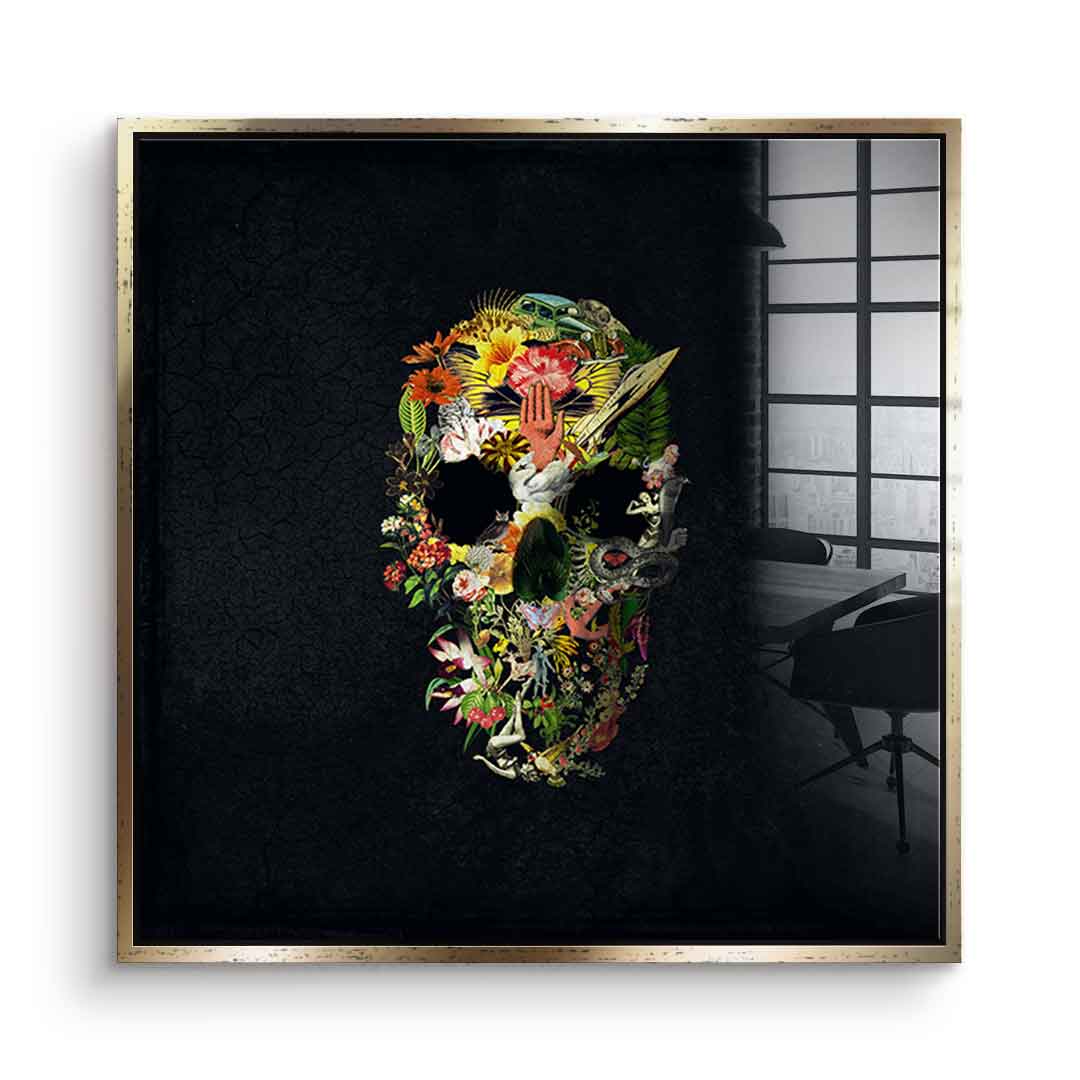 DOTCOMCANVAS® Premium Acrylglasbild mit Totenkopf Motiv.