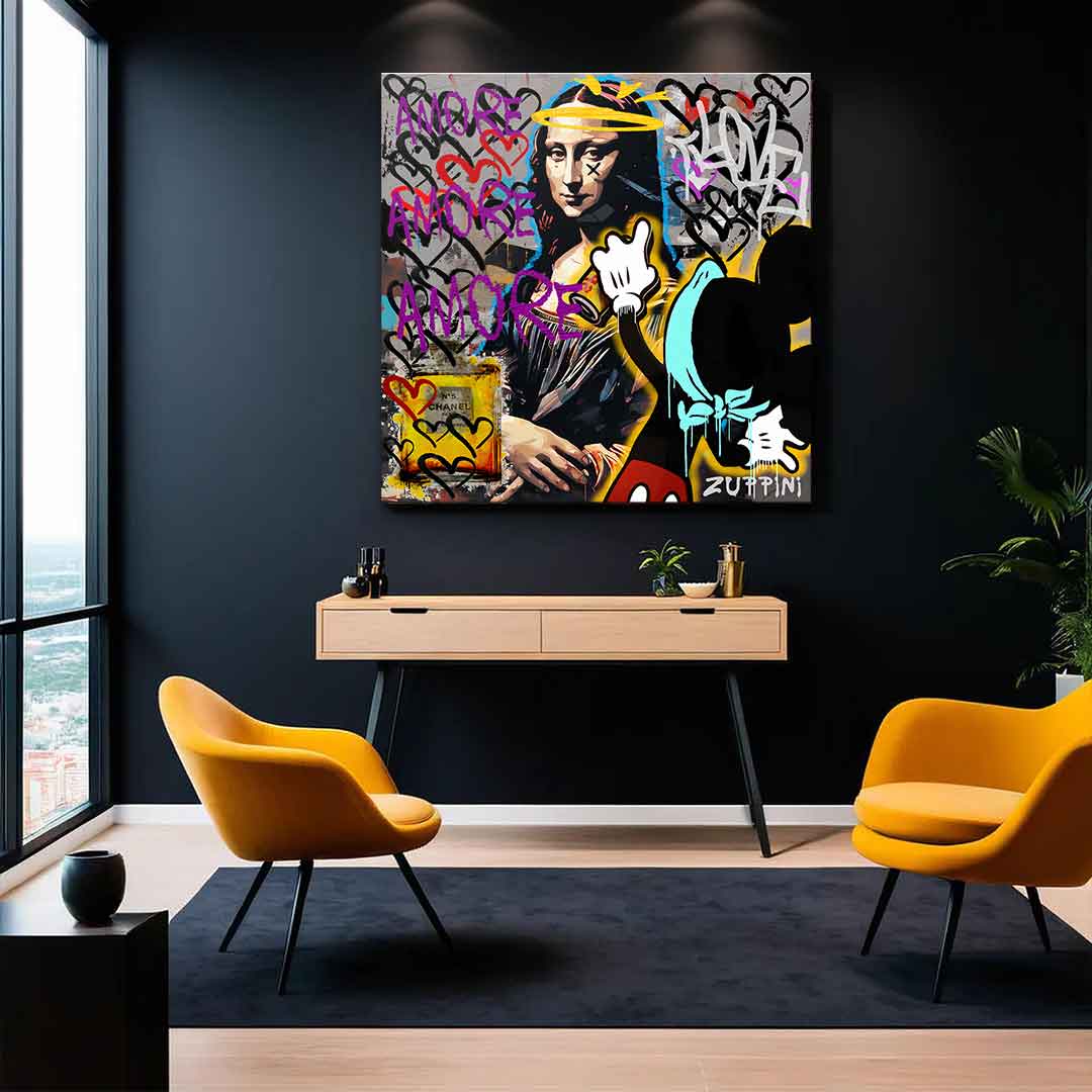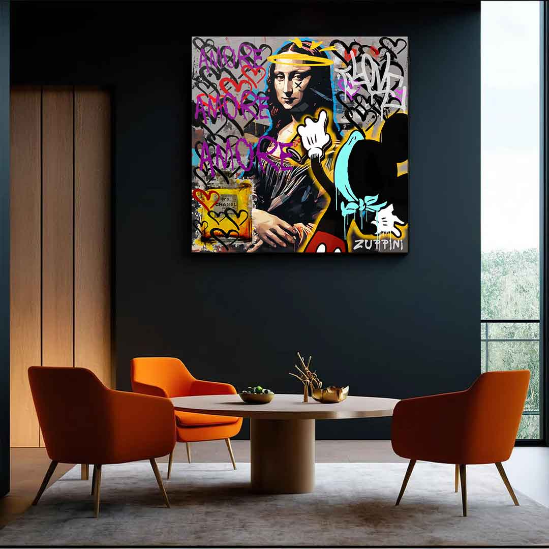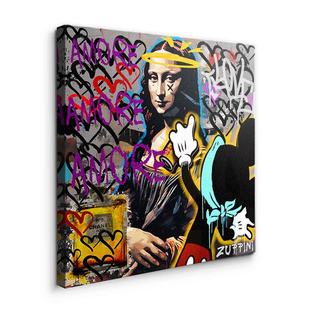 DOTCOMCANVAS® Premium Leinwandbild mit Comic Maus Mouse und Mona Lisa Motiv.