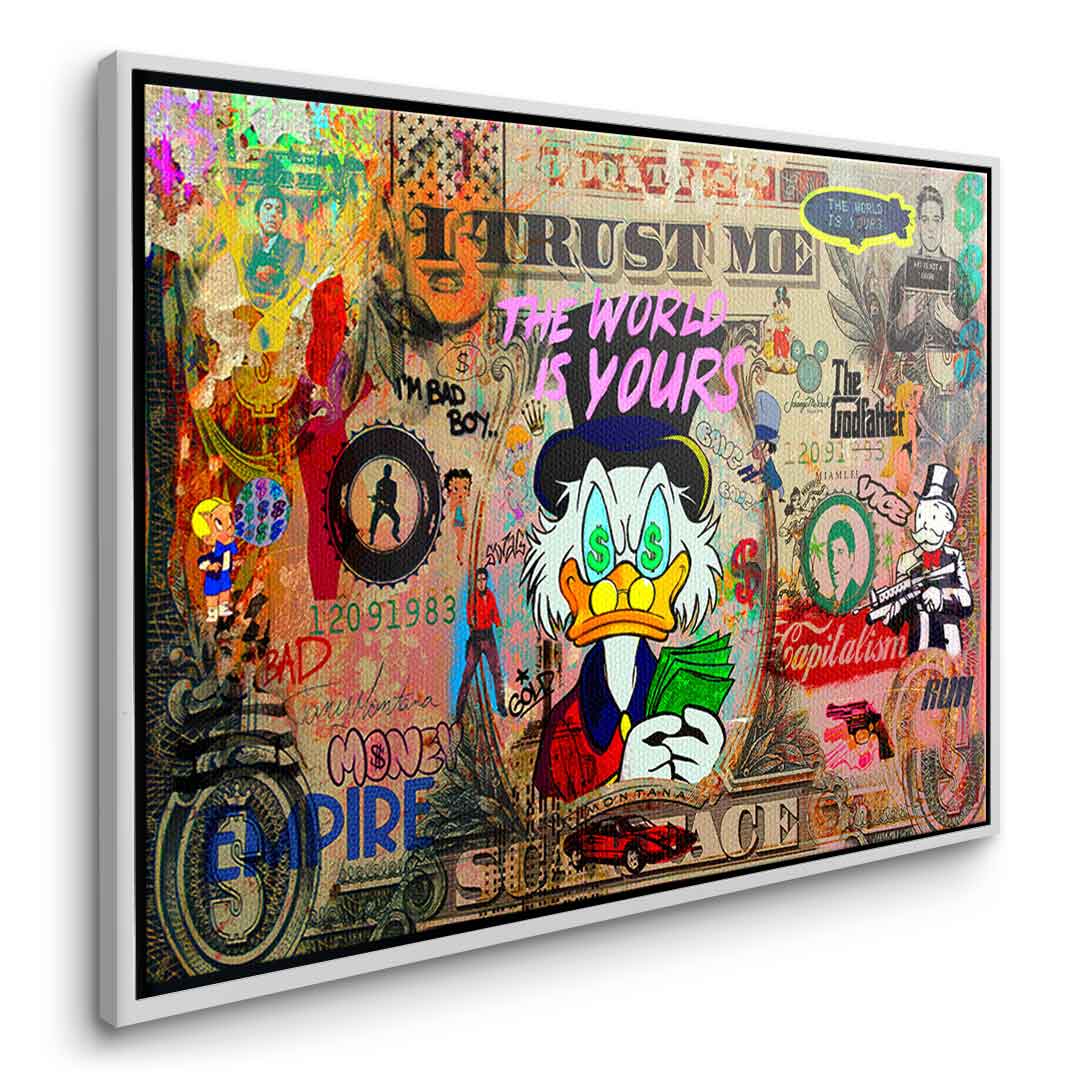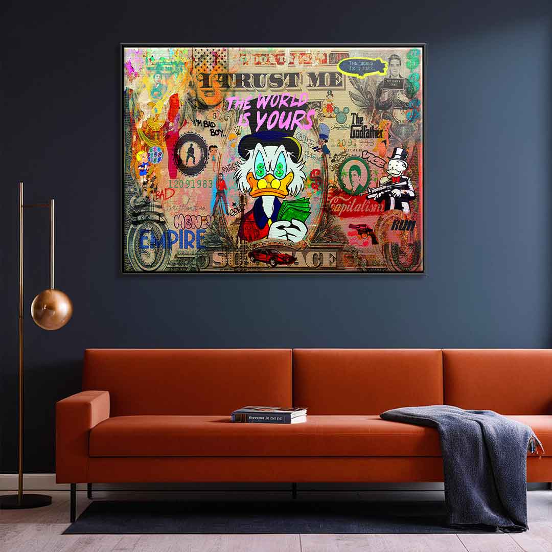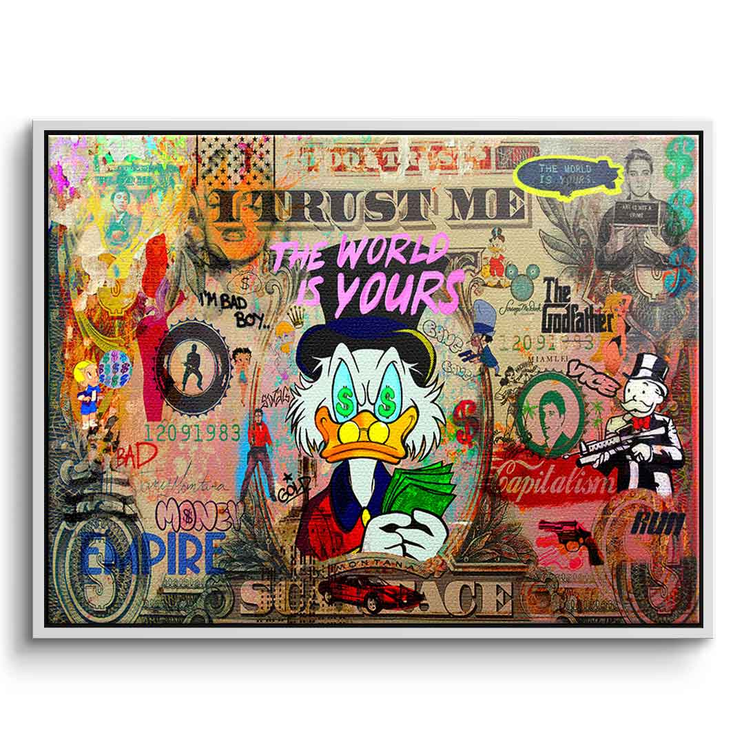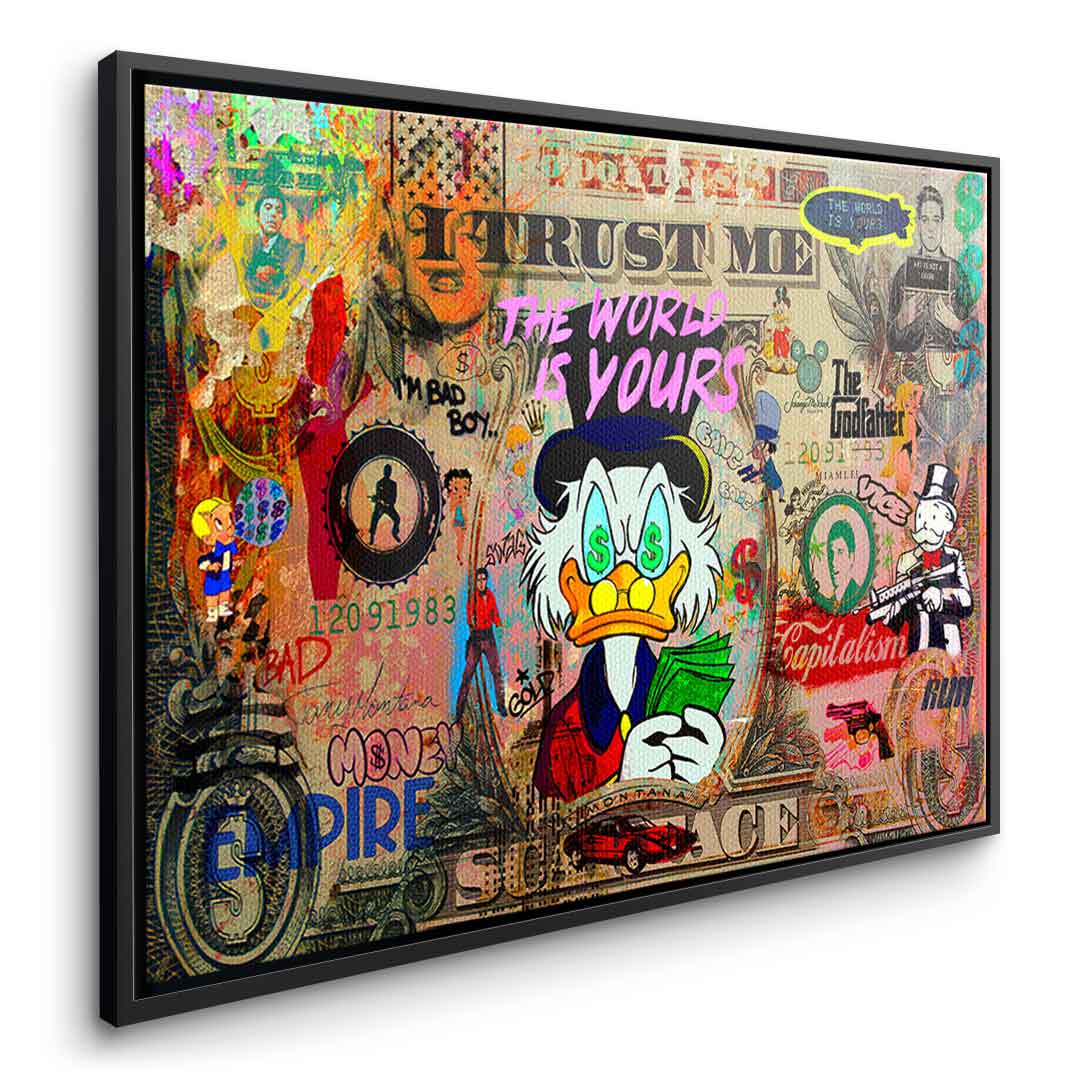 DOTCOMCANVAS® Premium Leinwandbild mit SCROOGE LIFE IS INSANE Motiv im Pop Art Stil.