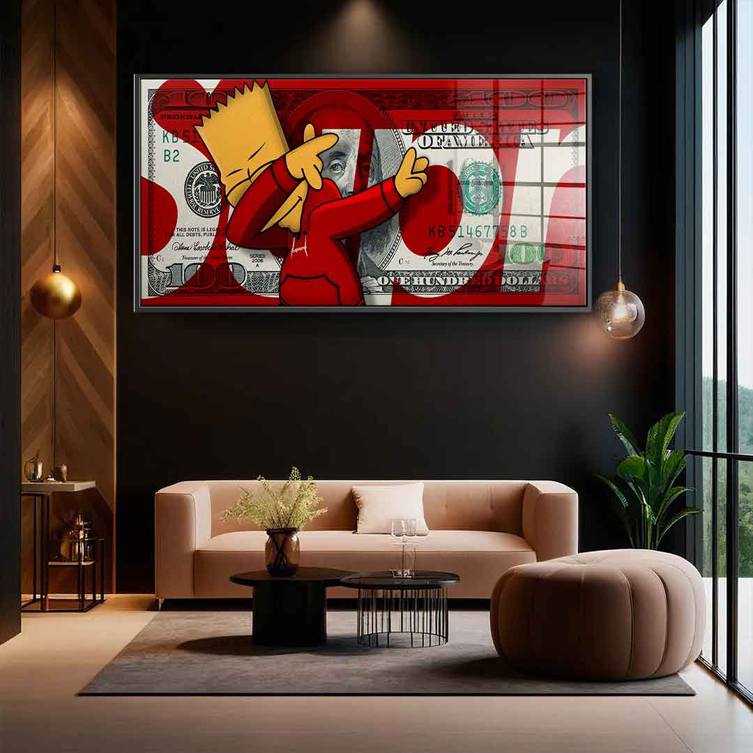 DOTCOMCANVAS® Premium Acrylglasbild mit Bart Simpson und Supreme Motiv.