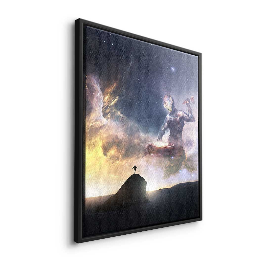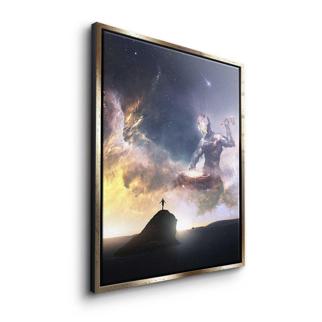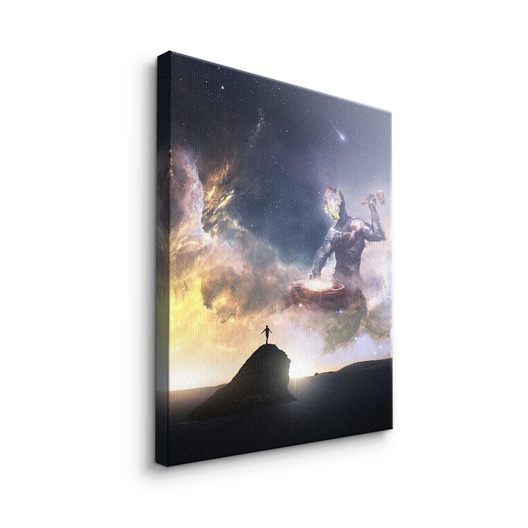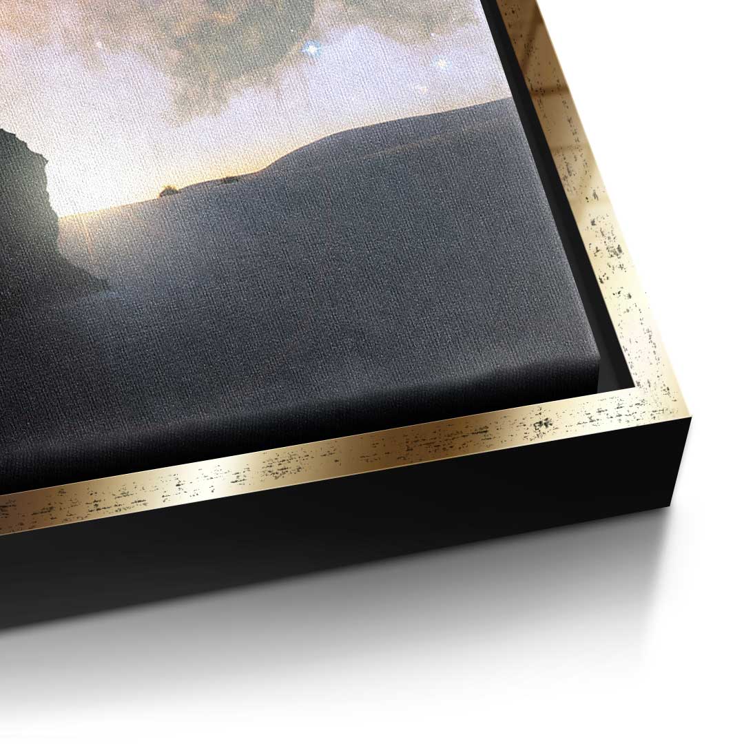 DOTCOMCANVAS® Premium Leinwandbild im Pop Art Stil mit Landschaft und Wolken in Blau, Rosa und Gold.