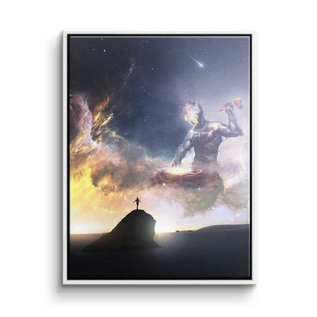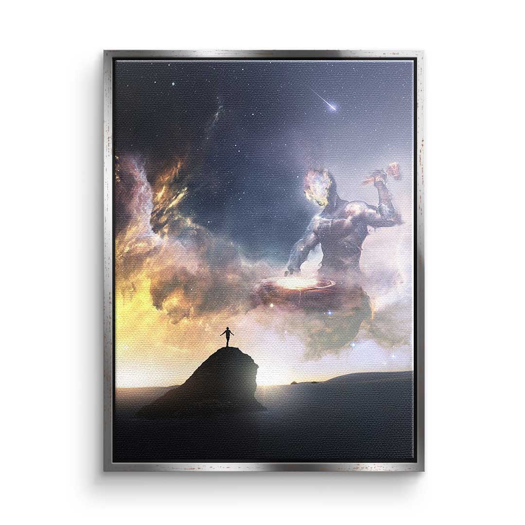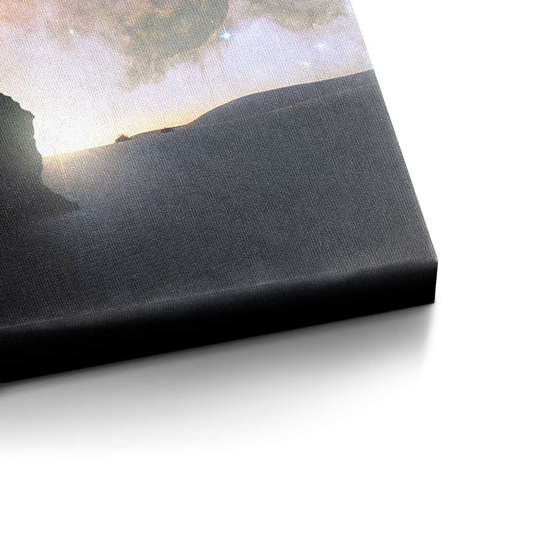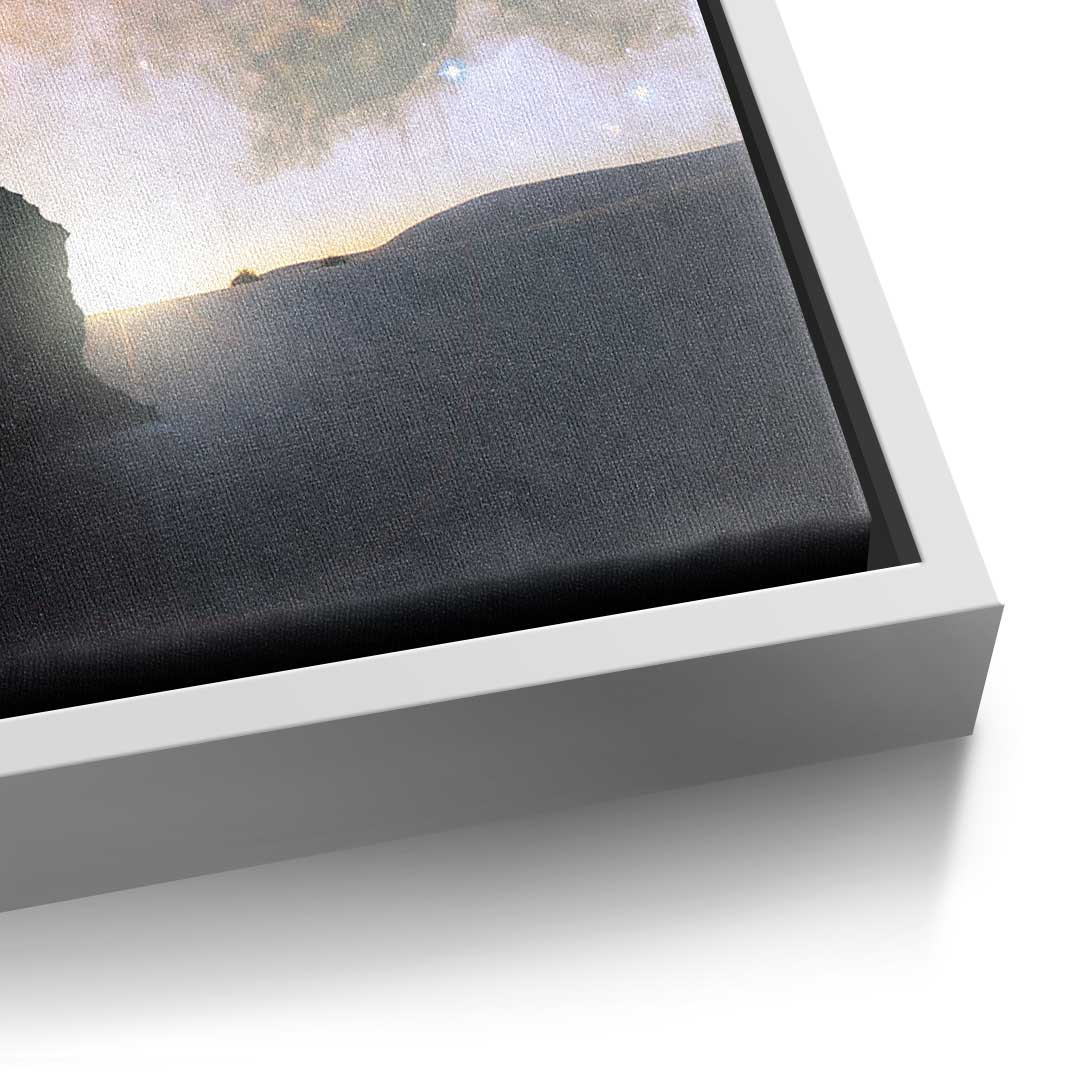 DOTCOMCANVAS® Premium Leinwandbild im Pop Art Stil mit Landschaft und Wolken in Blau, Rosa und Gold.