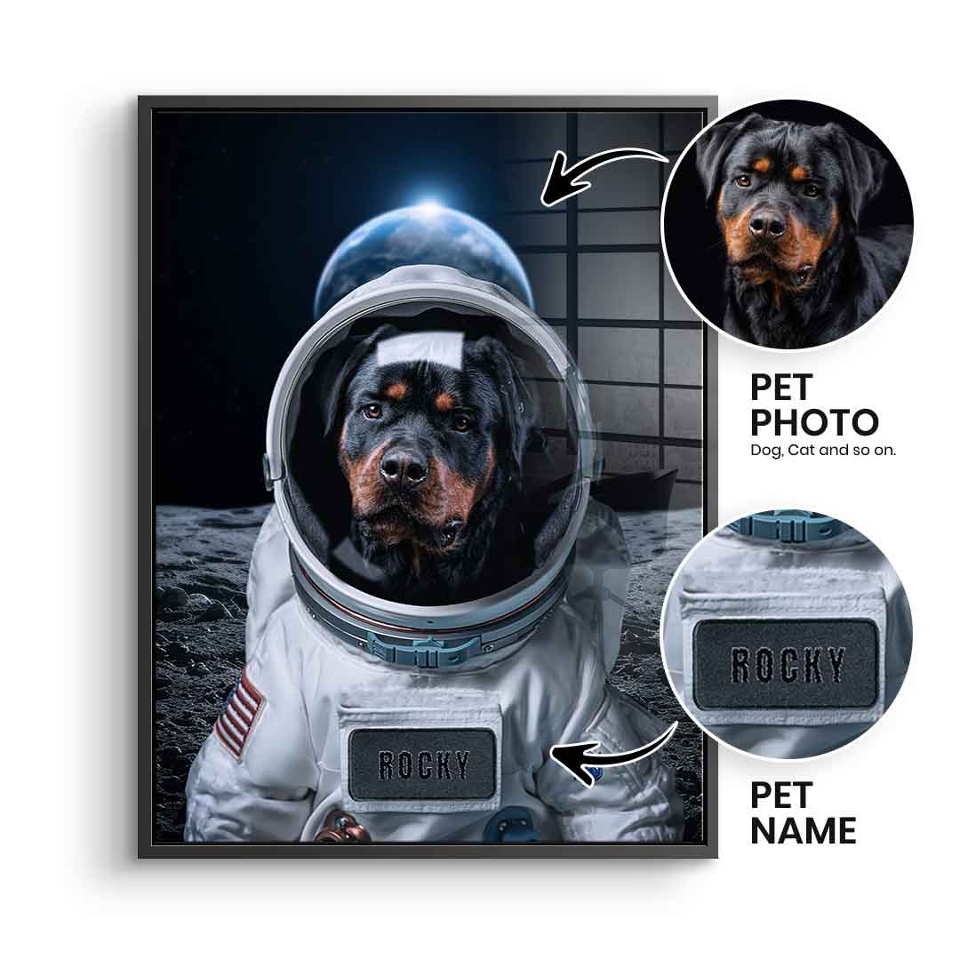 DOTCOMCANVAS® Premium Acrylglasbild mit personalisierbarem Astronaut - Motiv.