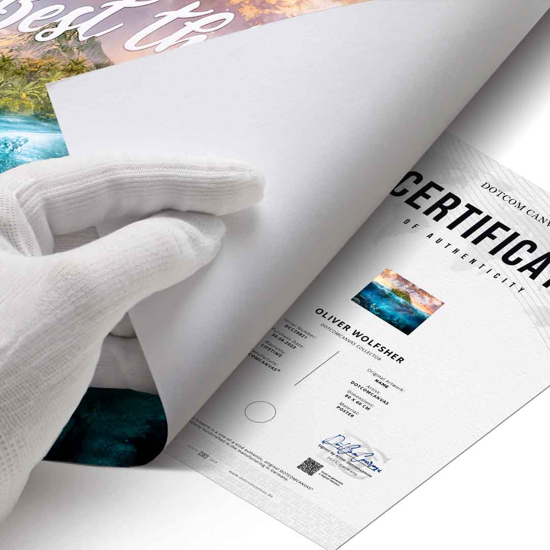 - Direkt Aufhangbereit: DOTCOMCANVAS® Poster sind direkt aufhangbereit.