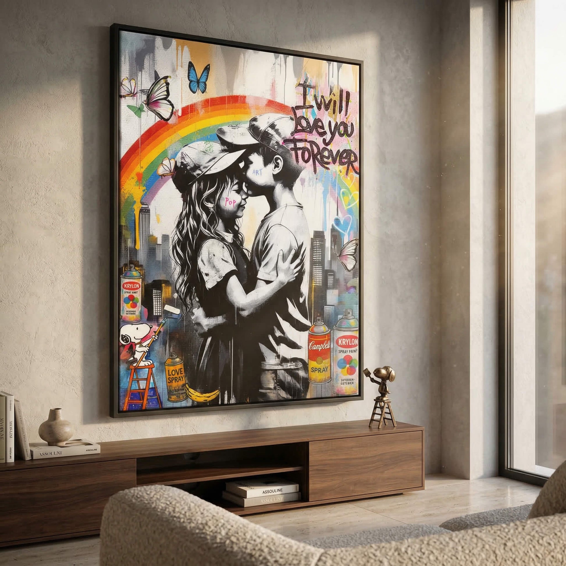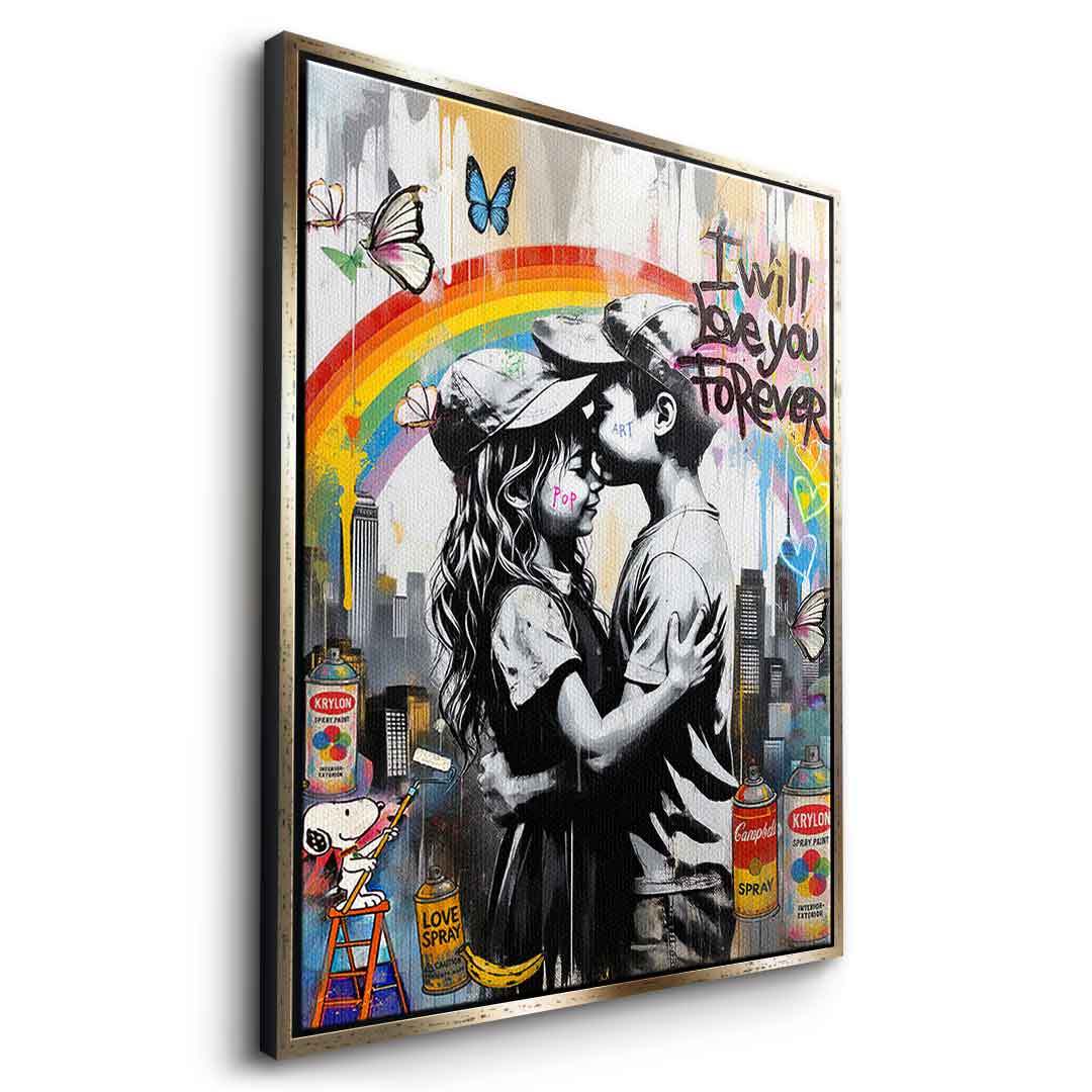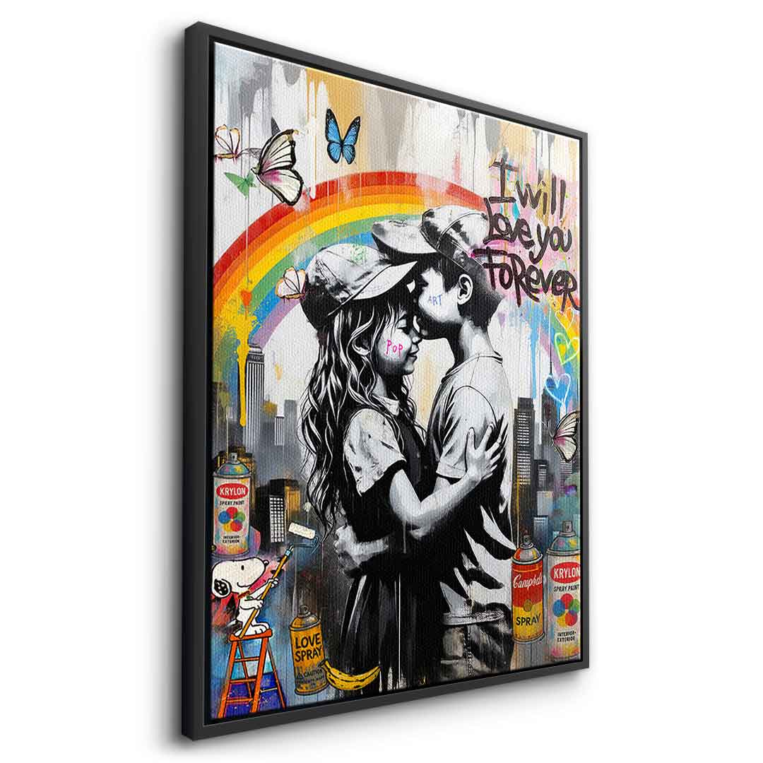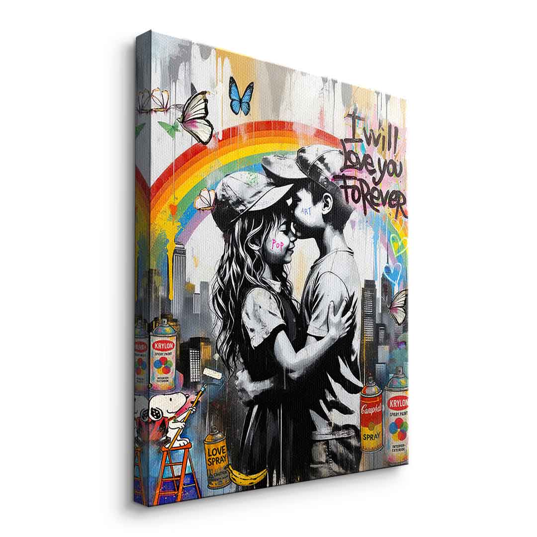 DOTCOMCANVAS® Premium Leinwandbild mit Forever Love im Banksy Stil Motiv.