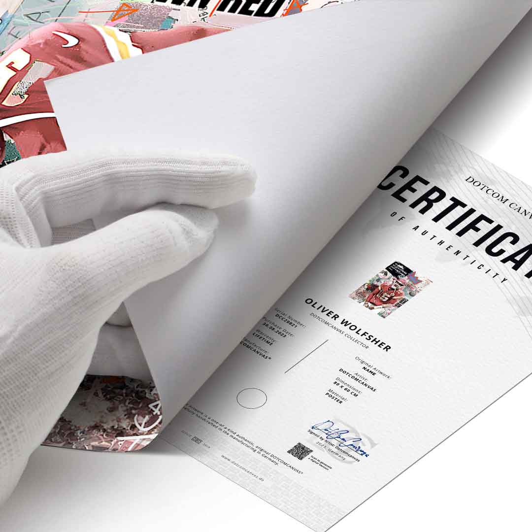 DOTCOMCANVAS® Premium Poster mit Pat Mahomes Motiv.