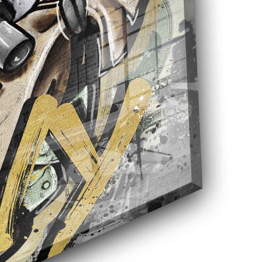 - Der gesamte Goldanteil wird in aufwendiger Handarbeit mit Blattgold auf das Acrylglas gepinselt