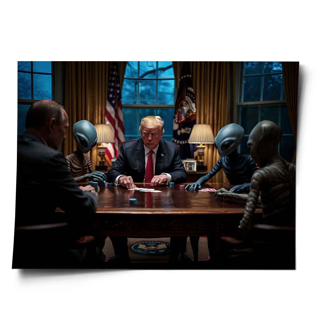 DOTCOMCANVAS® Premium Poster mit Oval Office Deal Motiv.