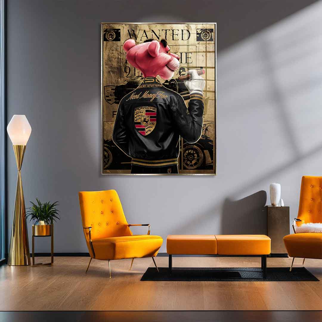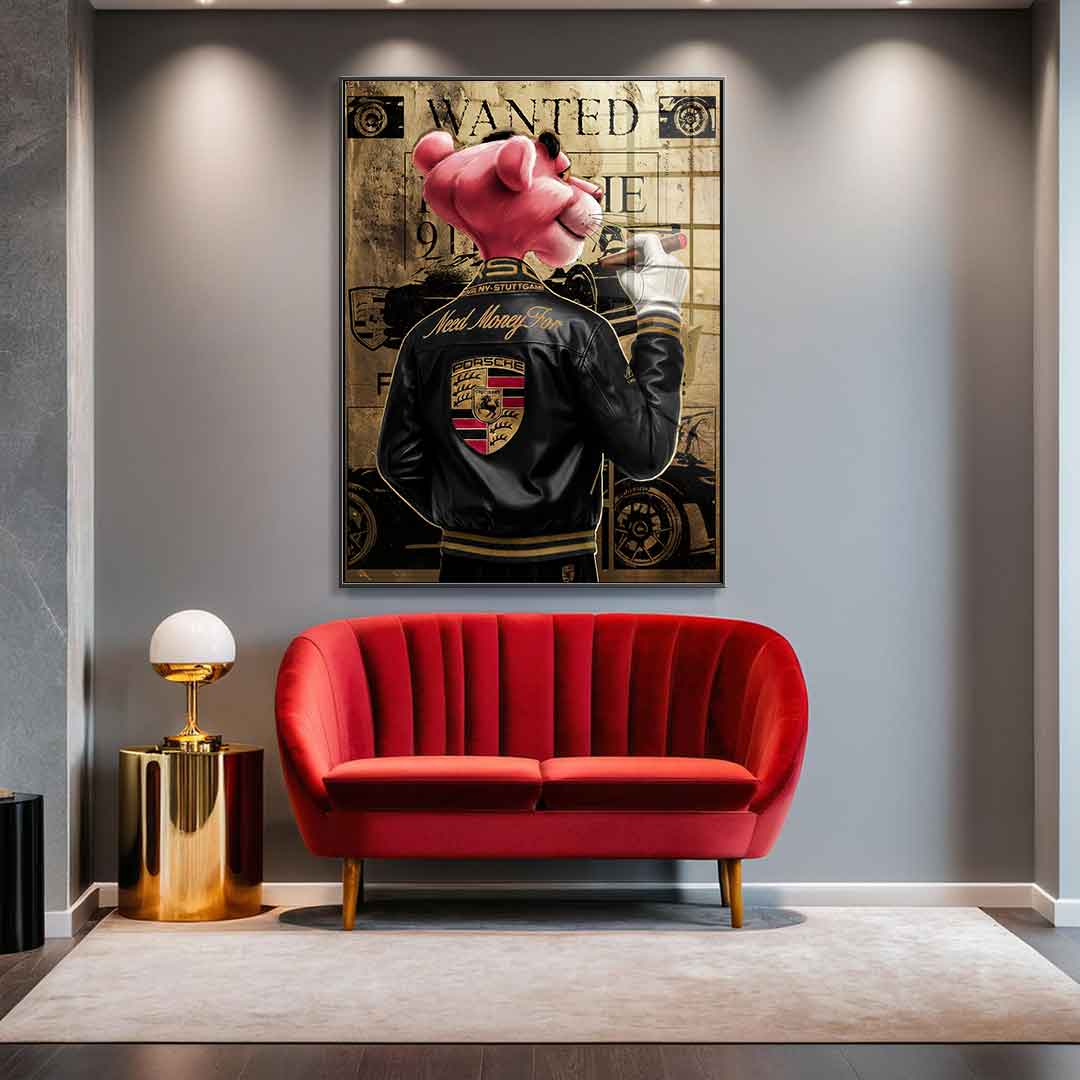 DOTCOMCANVAS® Premium Blattgoldbild mit Need Money for Porsche - Motiv.