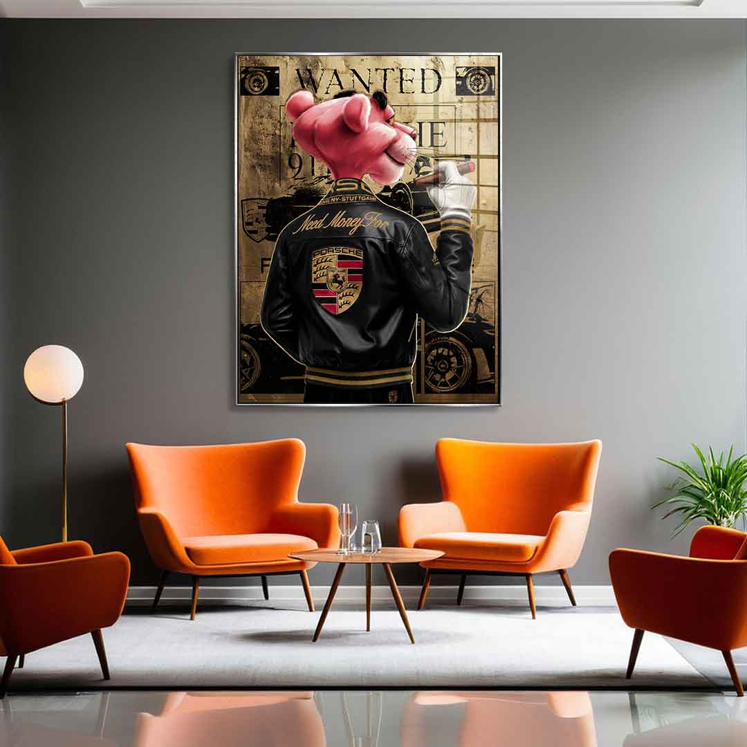 | BlattgoldbildDOTCOMCANVAS® Premium Blattgoldbild mit Need Money for Porsche - Motiv. ➤ Die Herstellung der Wandbilder erfolgt exklusiv und ist keine Lagerware -"Made in Germany"