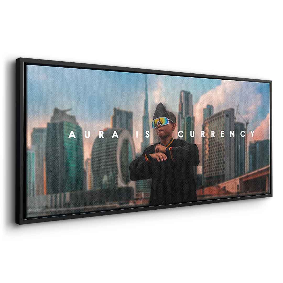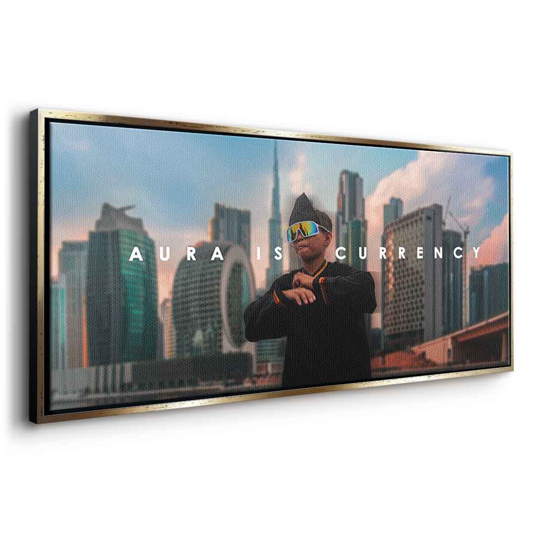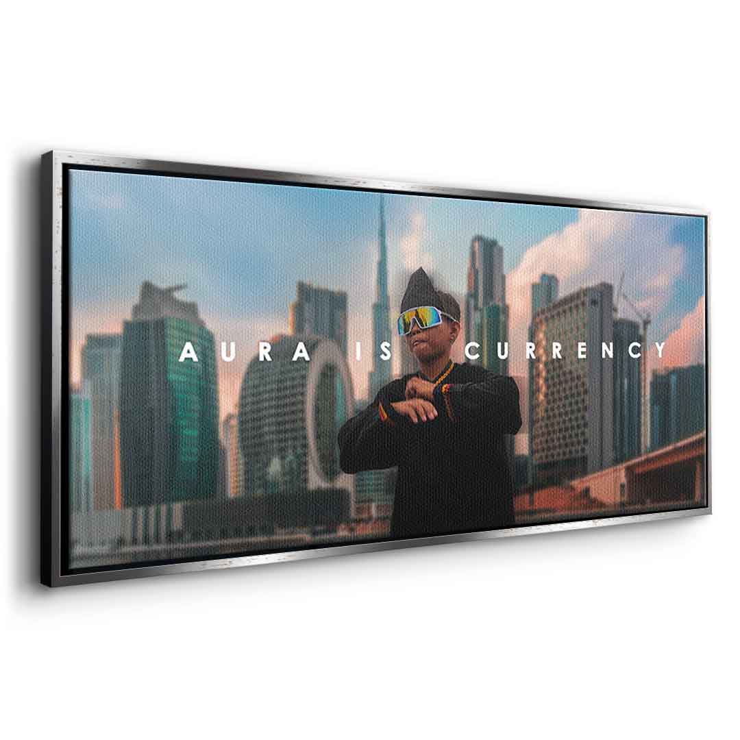 DOTCOMCANVAS® Premium Leinwandbild mit AURA IS CURRENCY Motiv.