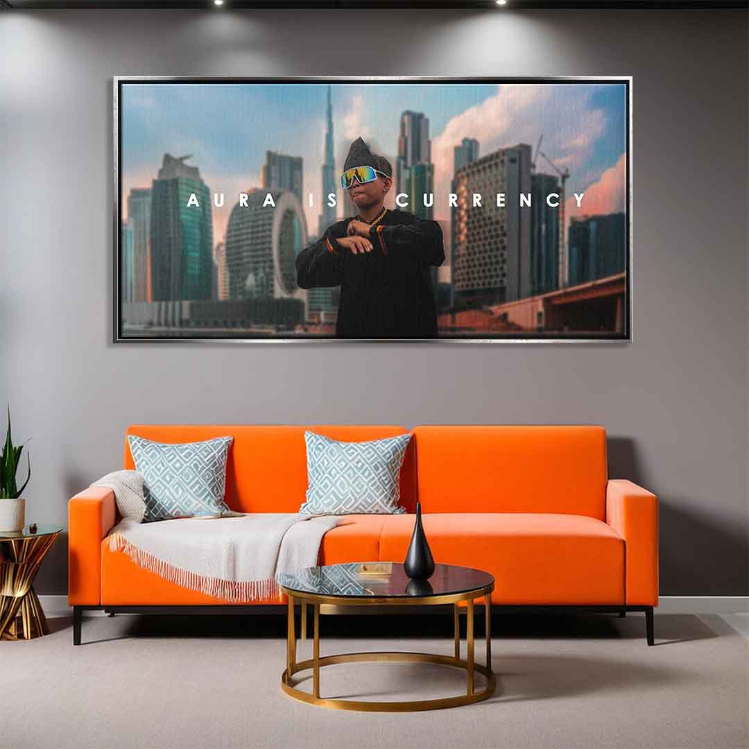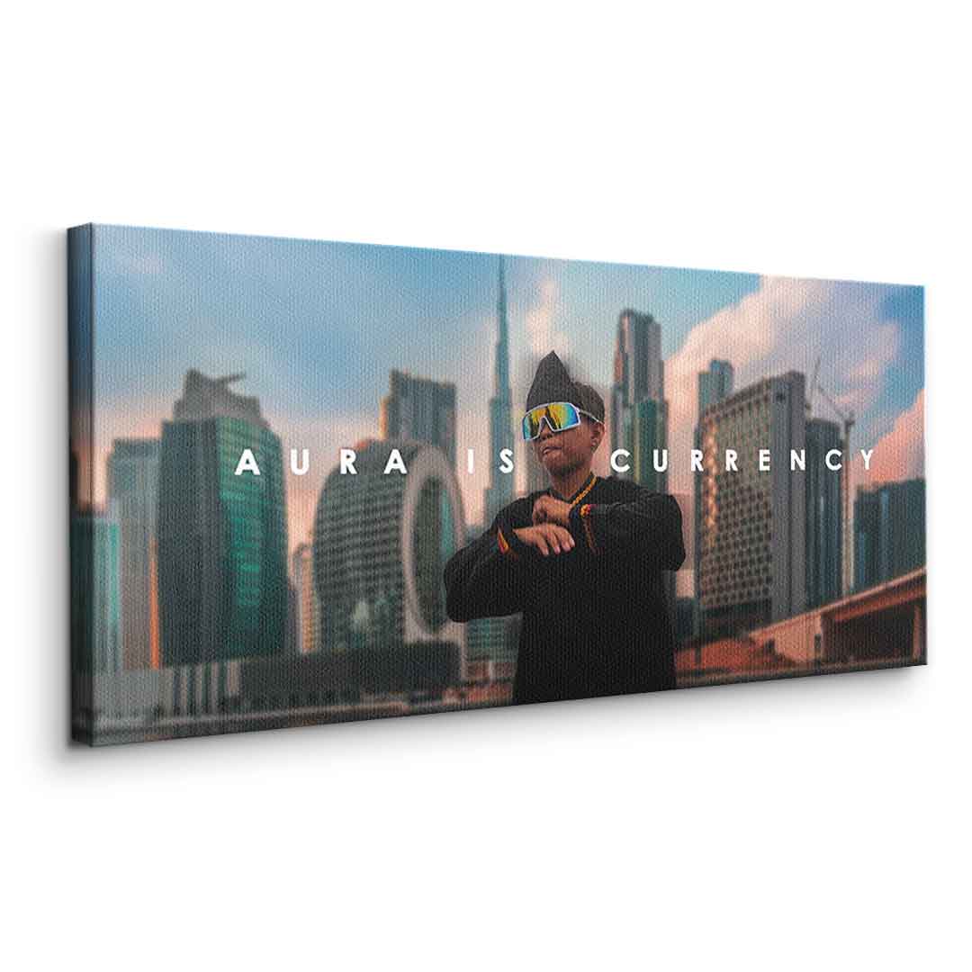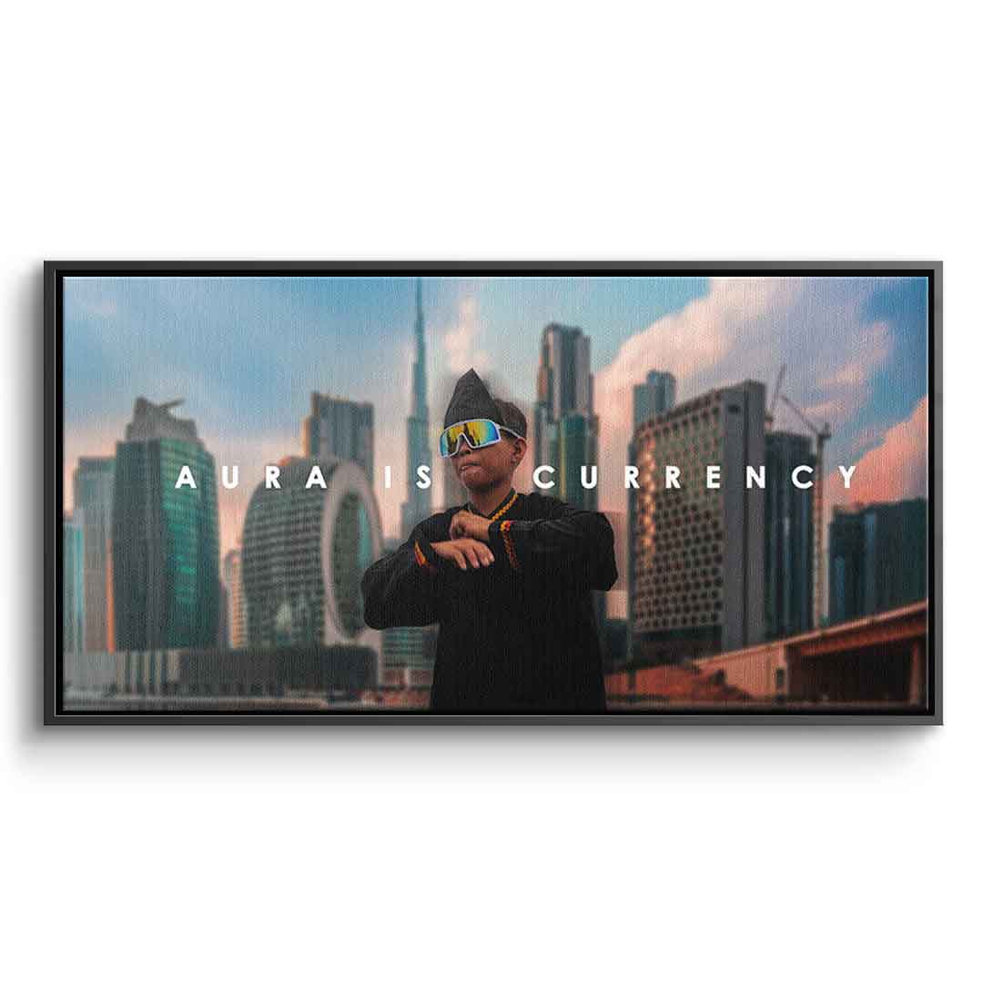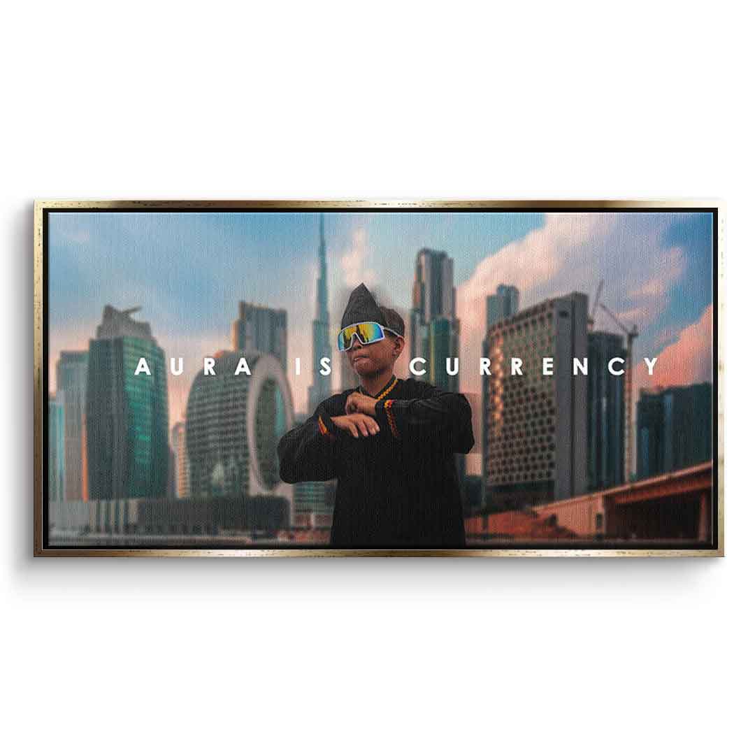 DOTCOMCANVAS® Premium Leinwandbild mit AURA IS CURRENCY Motiv.