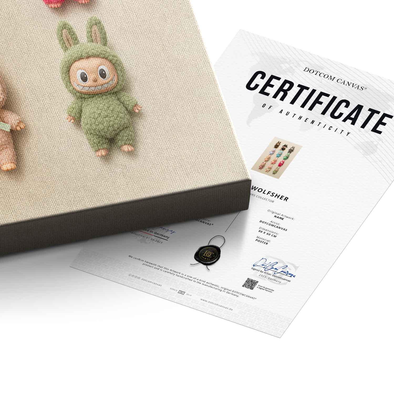 DOTCOMCANVAS® Premium Leinwandbild mit Flat Labubu Collection Motiv.