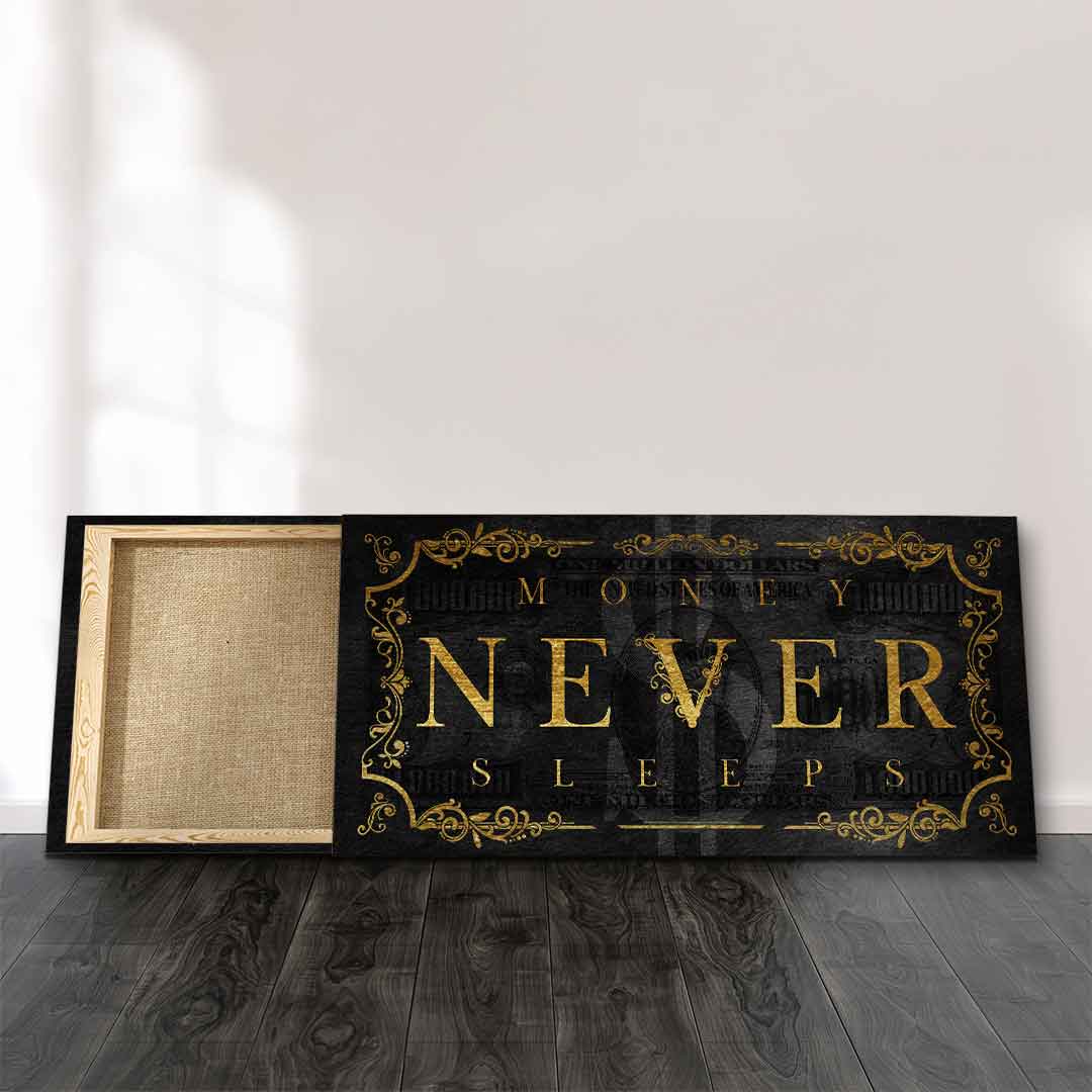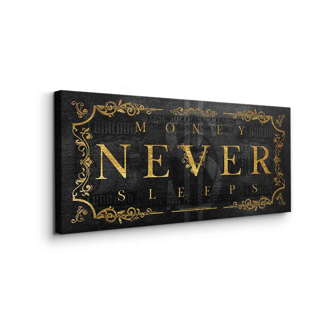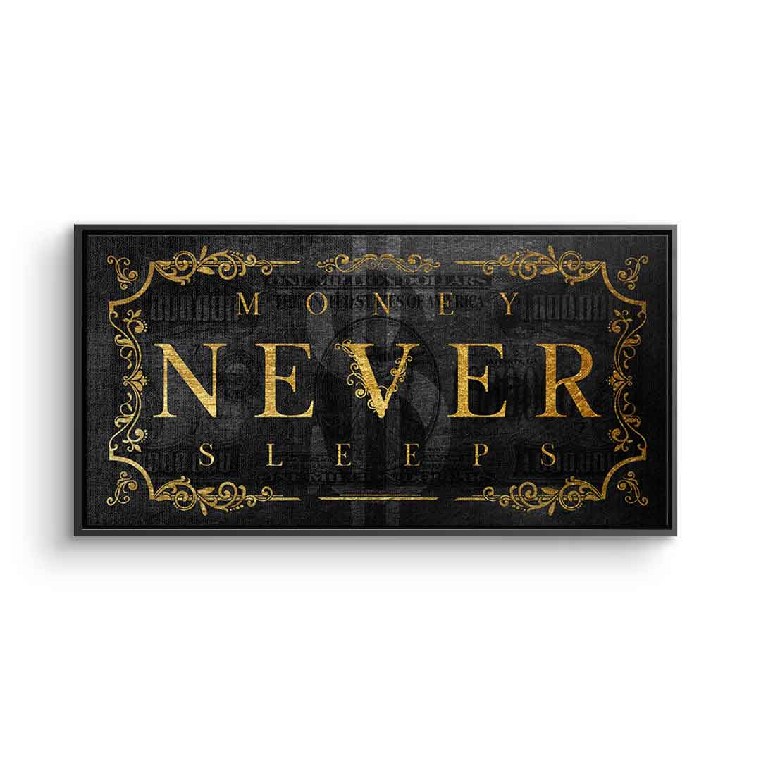 DOTCOMCANVAS® Premium Leinwandbild mit Money Never Sleeps Part 2 - Motiv.