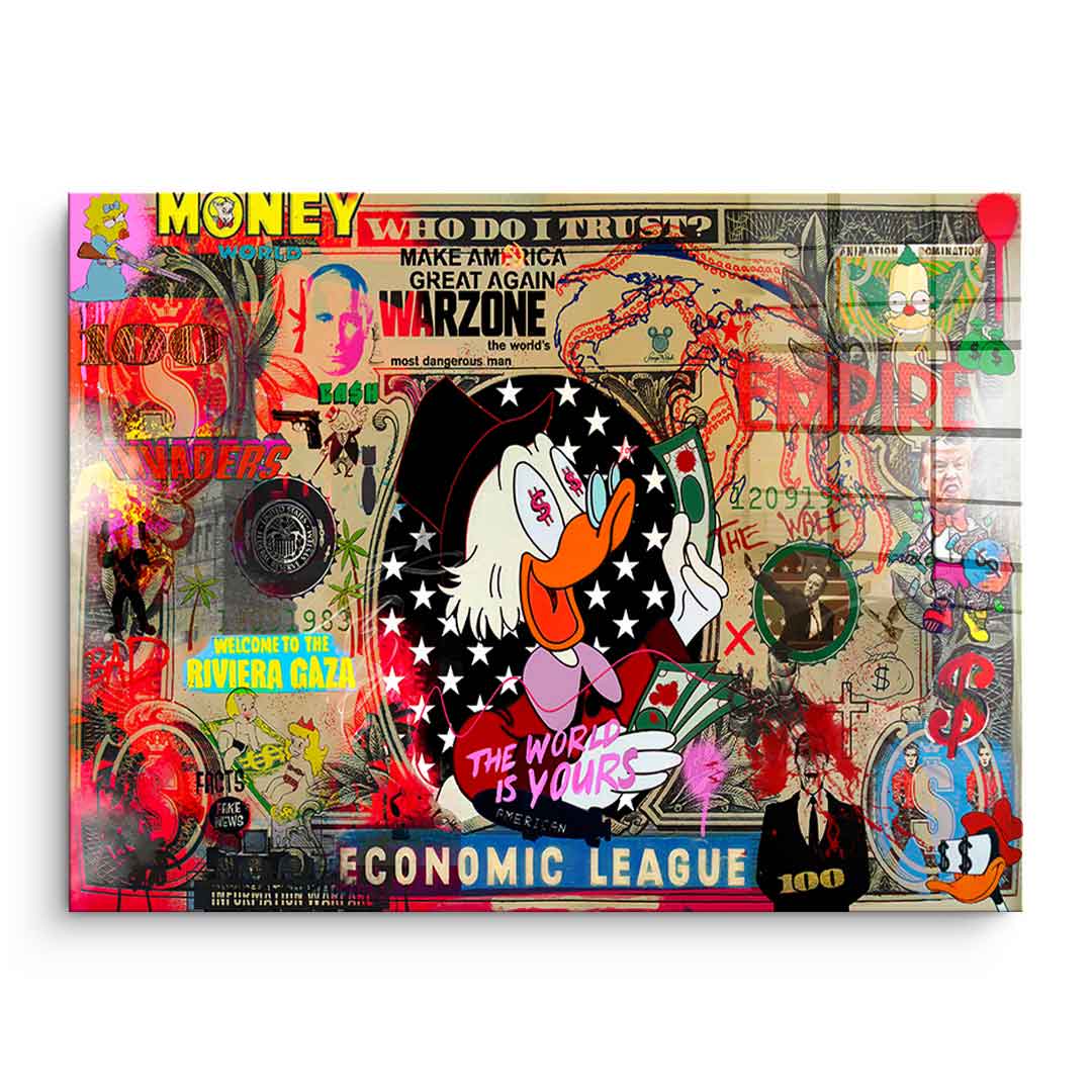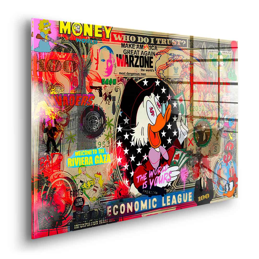 DOTCOMCANVAS® Premium Acrylglasbild mit THE WORLD IS YOURS Motiv im Pop Art Stil.