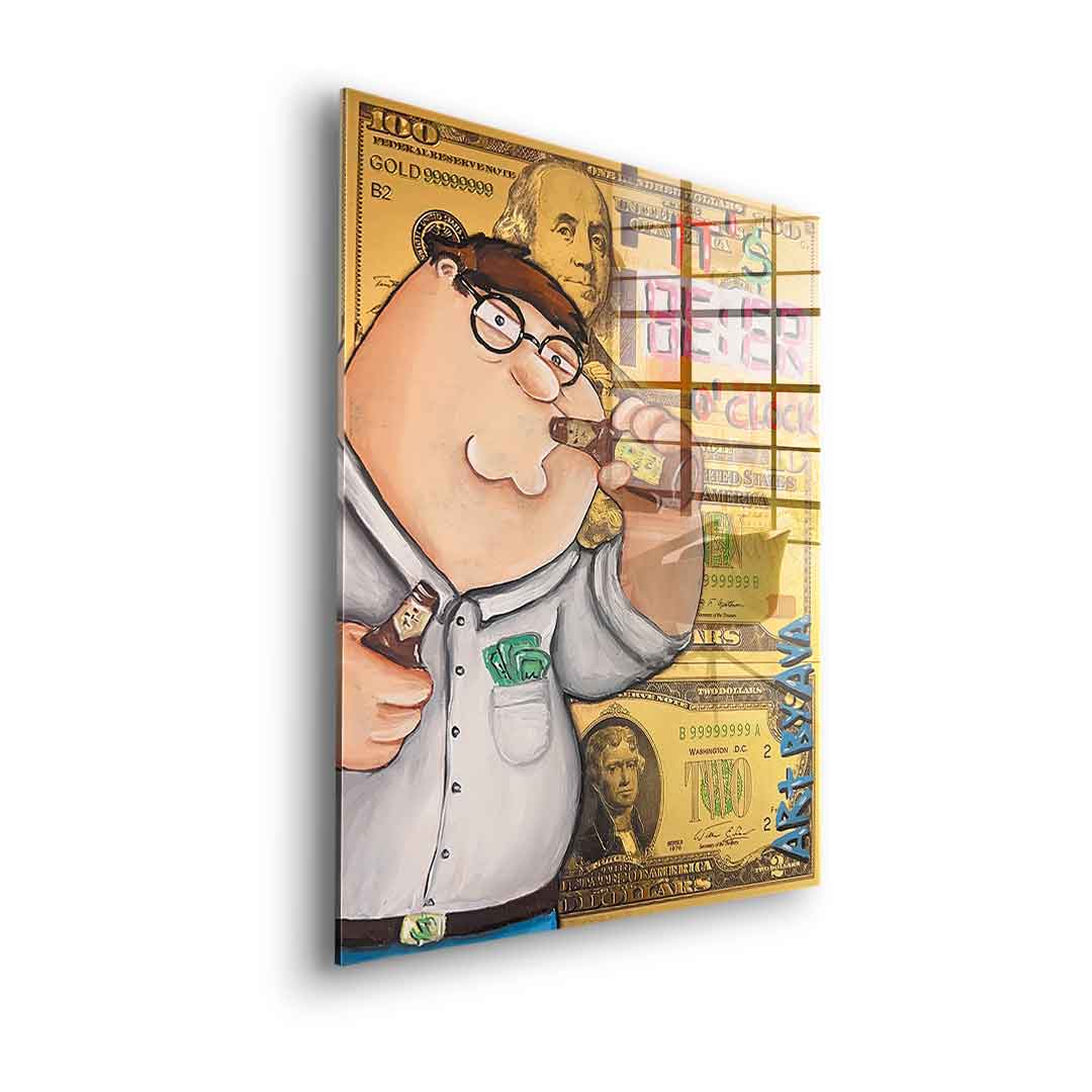 DOTCOMCANVAS® Premium Acrylglasbild mit Peter Griffin - Motiv aus Family Guy im Comic / Cartoon - Stil mit Schriftzug "It's Beer o'clock".