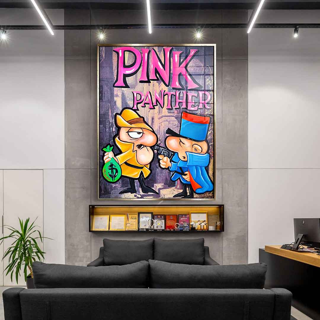 DOTCOMCANVAS® Premium Acrylglasbild mit Inspektor Clouseau Motiv im Comic Stil aus Der rosarote Panther.