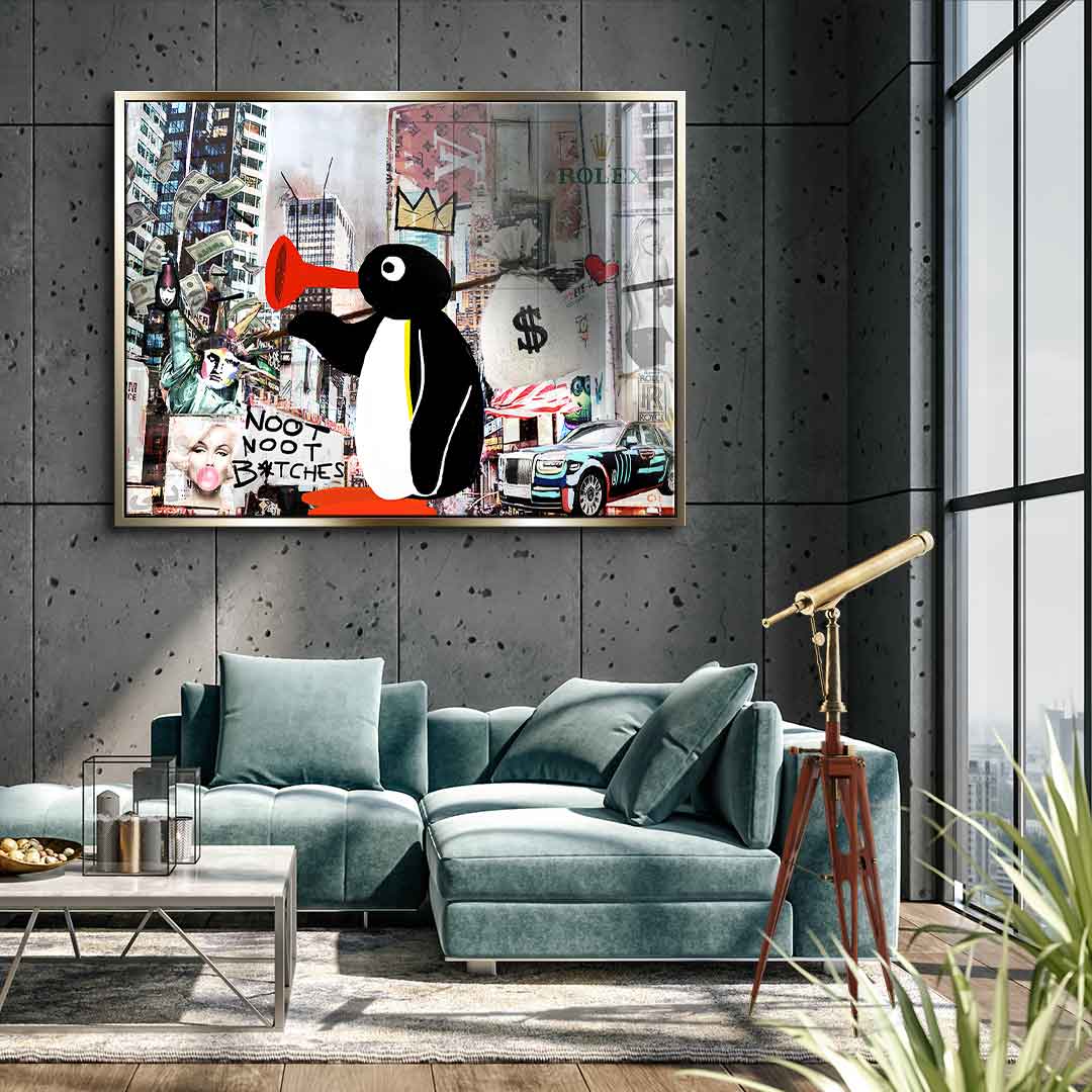DOTCOMCANVAS® Premium Acrylglasbild mit Noot Noot / Pinguin - Motiv im Pop Art / Streetart Stil.