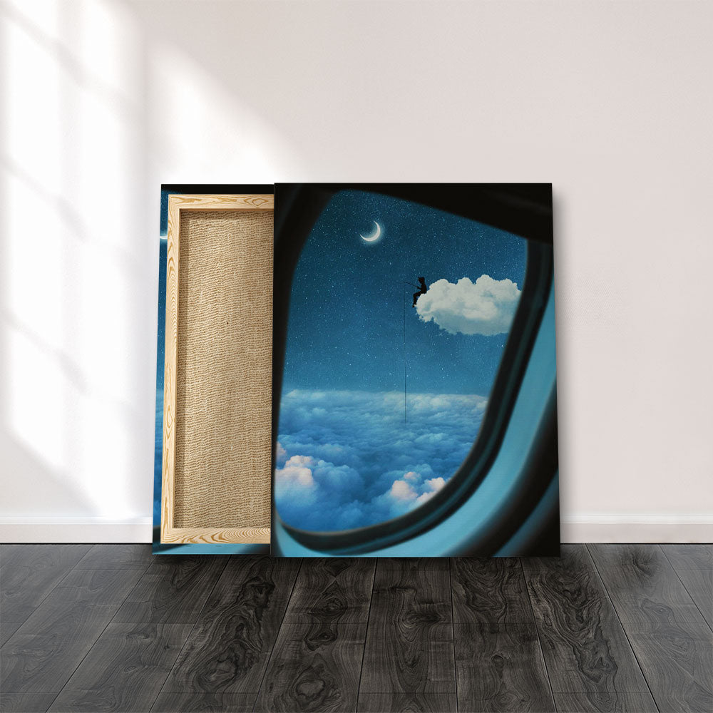 "Cloud Fishing" Wandbild blauer Himmel mit Wolken Angler von DOTCOM CANVAS®