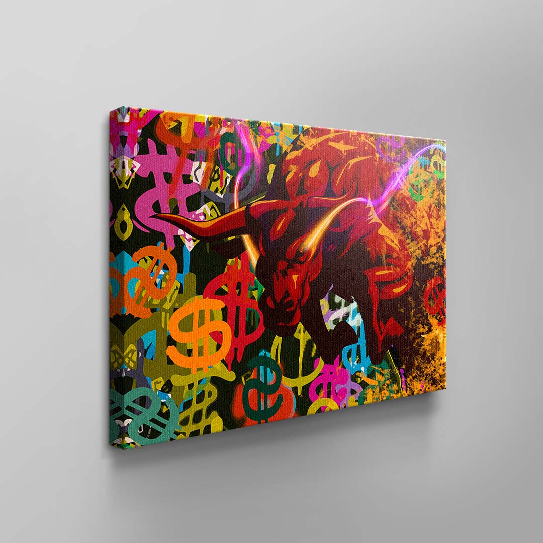 | "Comic Bull" Wandbild Börsen Bulle Bunt von DOTCOM CANVAS® | Regulärer Preis