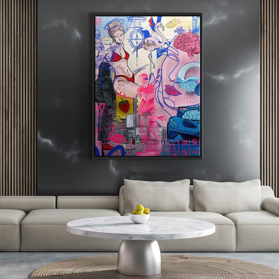 Hallo, mein Name ist Sebastian, und ich wurde im Jahr 1994 in Berlin geboren und aufgewachsen. Die Welt der Kunst hat mich seit meiner Kindheit ständig begleitet – von meinen frühen Zeichnungen auf Papier bis hin zu meinen ersten Versuchen auf kleinen Leinwänden. In der Gegenwart male ich regelmäßig auf einer Größe von 150 cm x 100 cm. Besonders prägend für meinen Stil sind Comics und Graffiti, die einen bedeutenden Einfluss auf meine künstlerische Ausdrucksweise hatten. Im Laufe der Zeit habe ich einen ganz eigenen Stil entwickelt, der sich in meinen aktuellen Werken widerspiegelt.