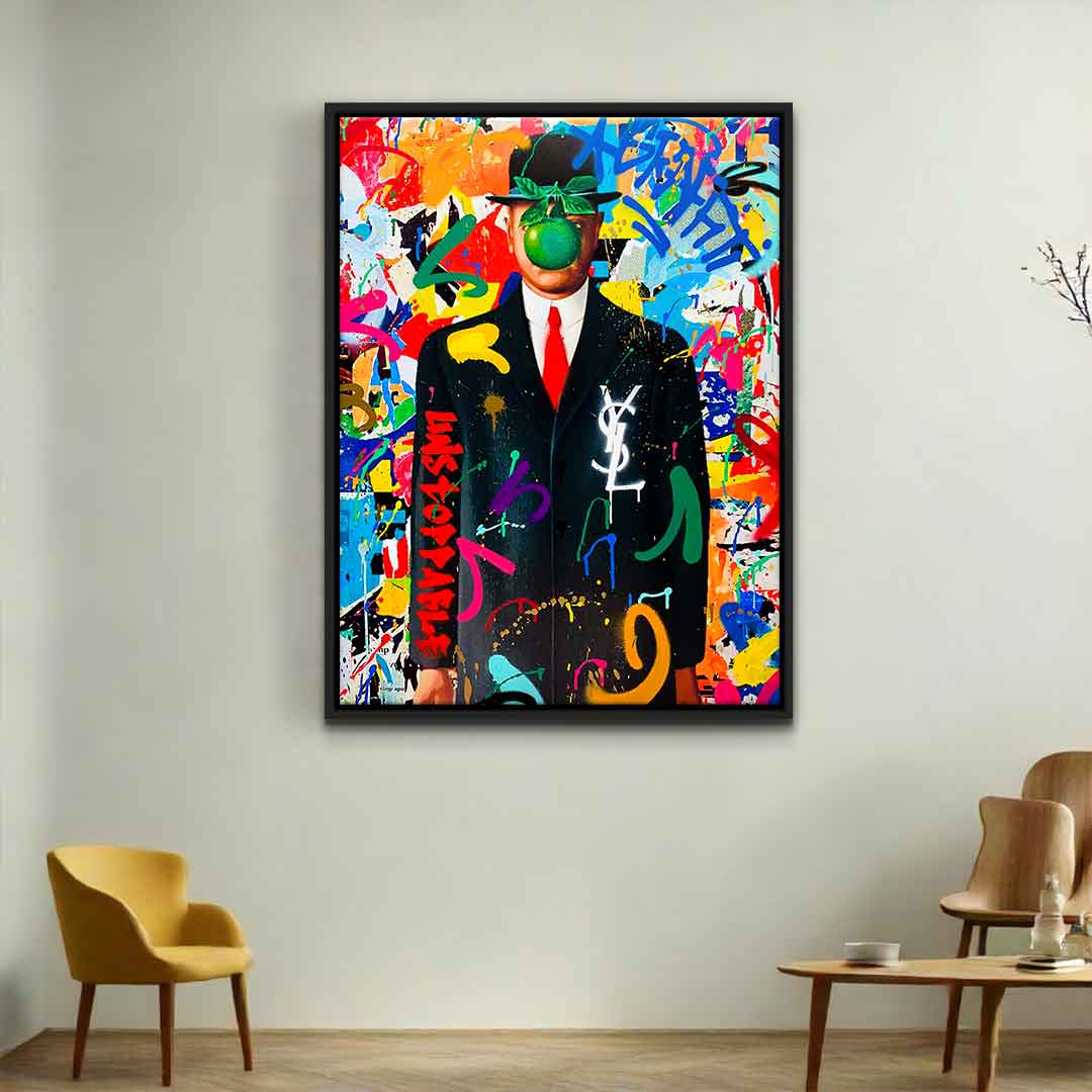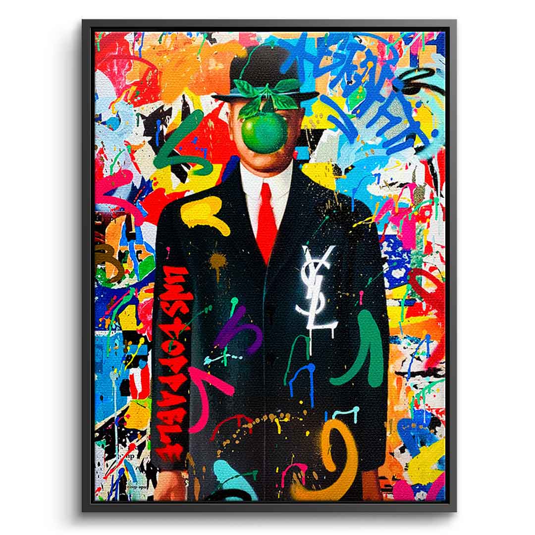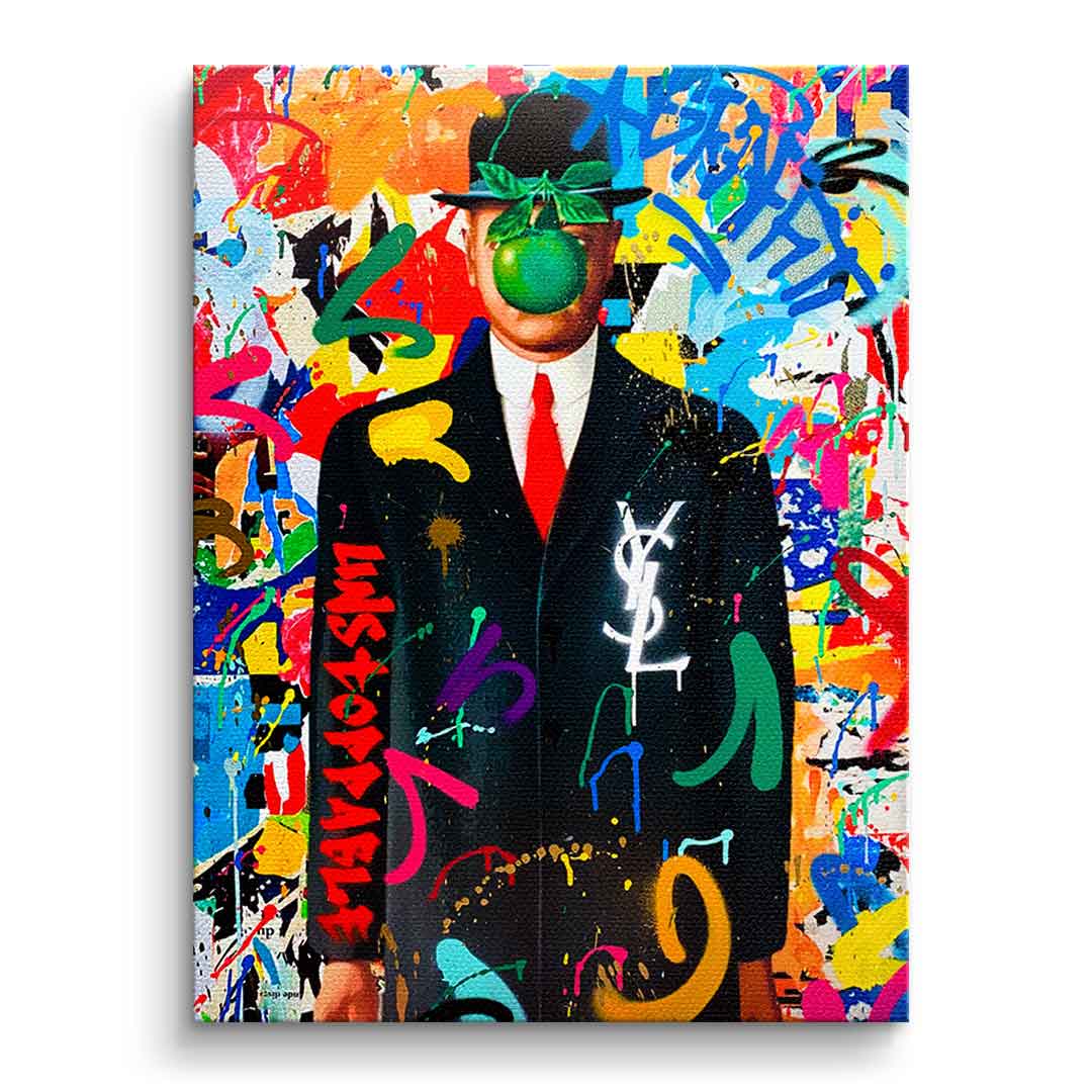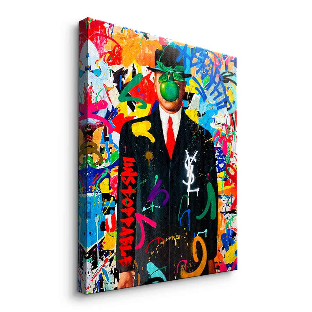 DOTCOMCANVAS® Premium Leinwandbild mit Graffiti Magritte Motiv.