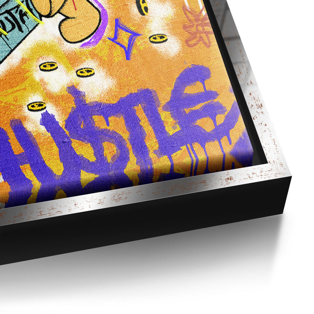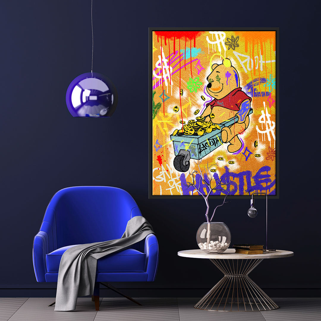 DOTCOMCANVAS® Premium Leinwandbild im Pop-Art-Style mit HU$TLE BEAR Motiv.