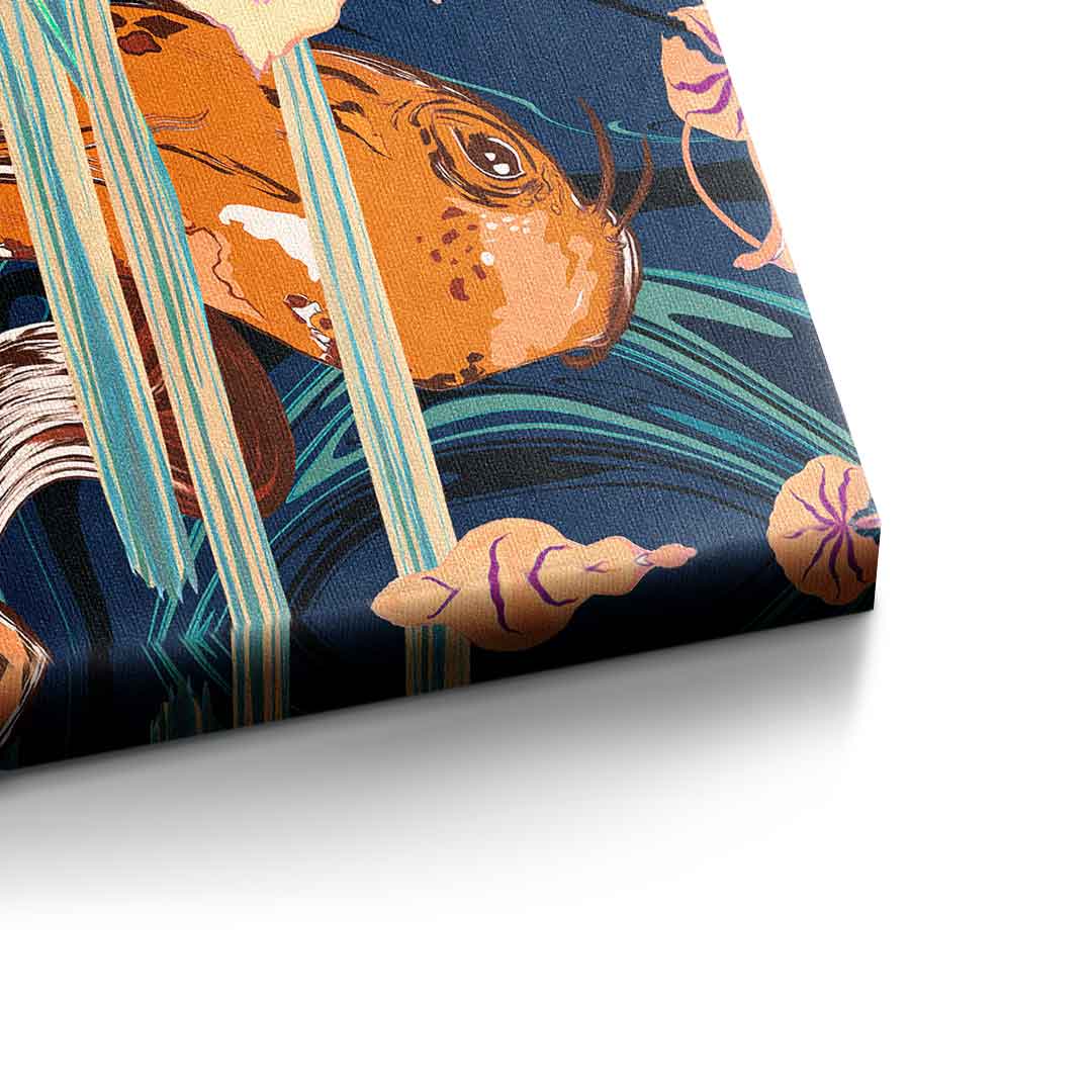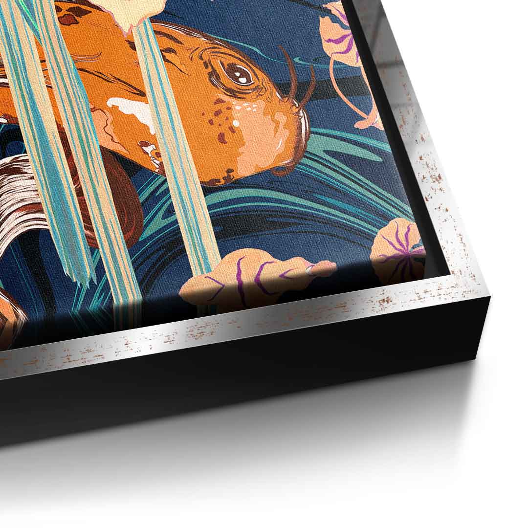 DOTCOMCANVAS® Premium Leinwandbild mit abstraktem Koi Fische und Blumen Motiv.