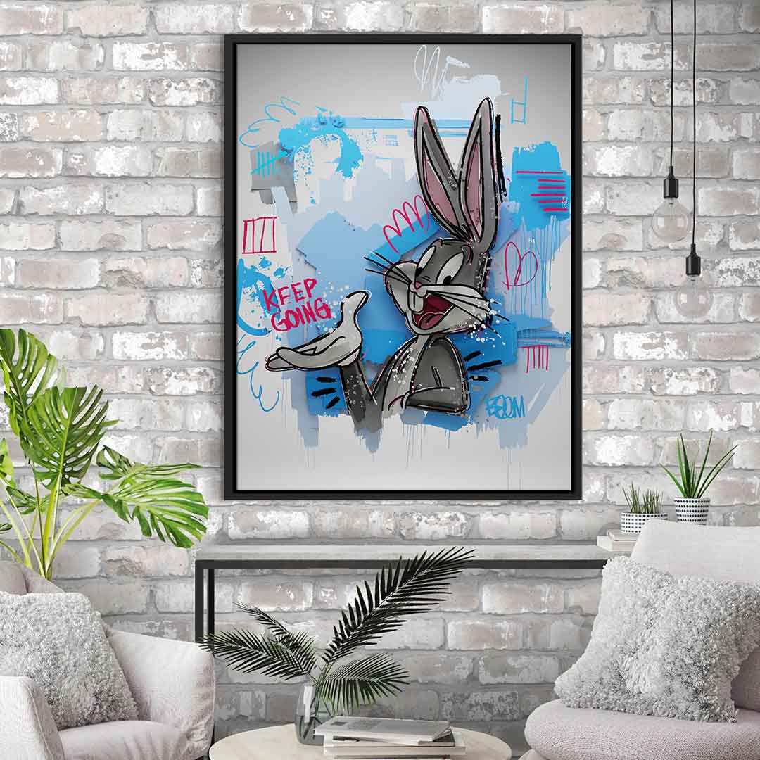 DOTCOMCANVAS® Premium Leinwandbild mit Bugs Bunny - Motiv im Pop Art / Comic / Cartoon Stil.